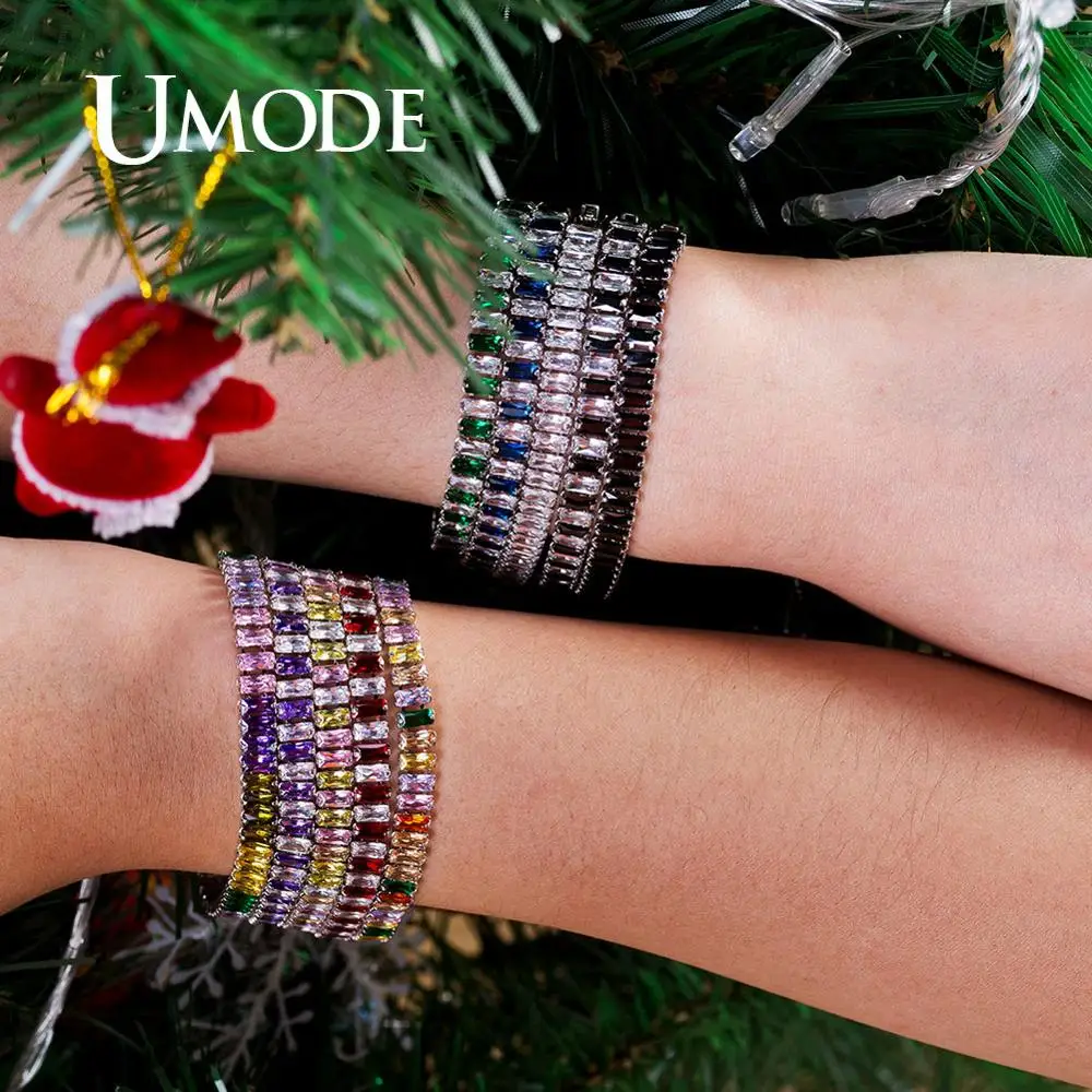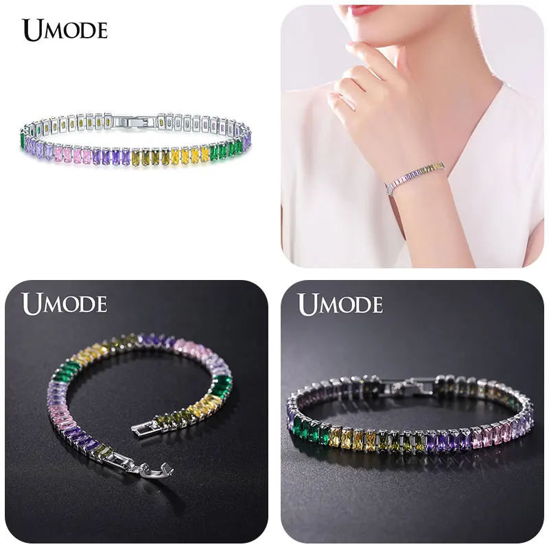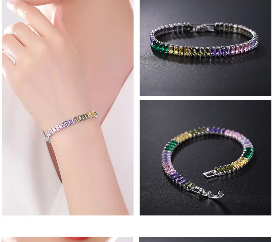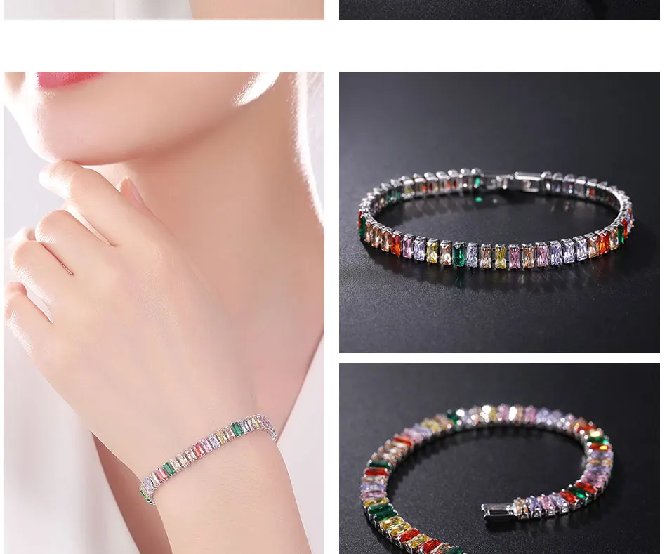 Браслет женский теннисный с радужными кристаллами и разноцветным цирконием