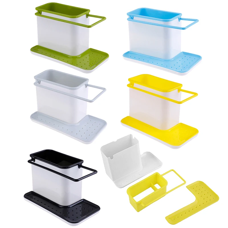 Кухонная полка для хранения 3-в-1, дозатор для мыла, вешалка для полотенец, держатель губки для ванной, Многофункциональный органайзер для чистящих полотенец, инструмент $3,21/Шт/Лот 1