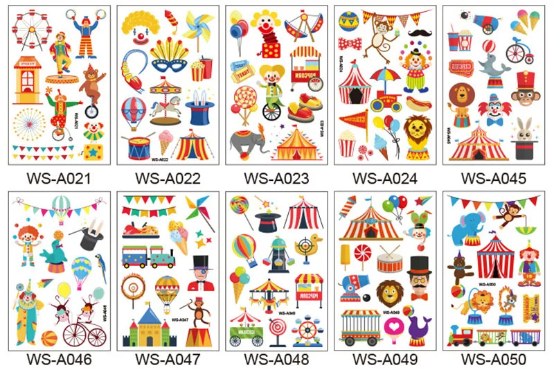 Временные татуировки, наклейки для фотографий, водостойкие, цирковые, клоуны, товары вечерние, Детские сувениры Вечерние