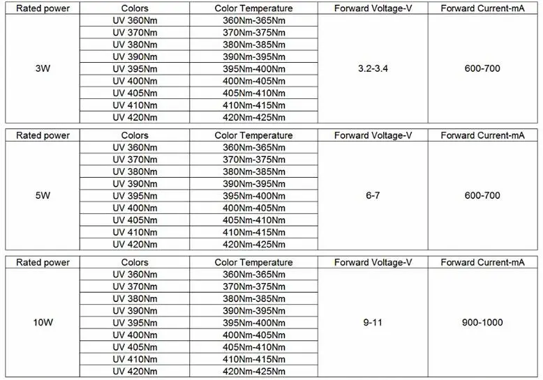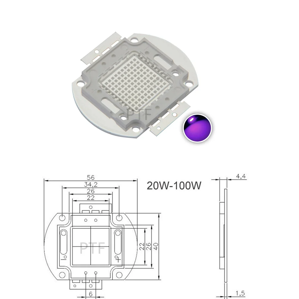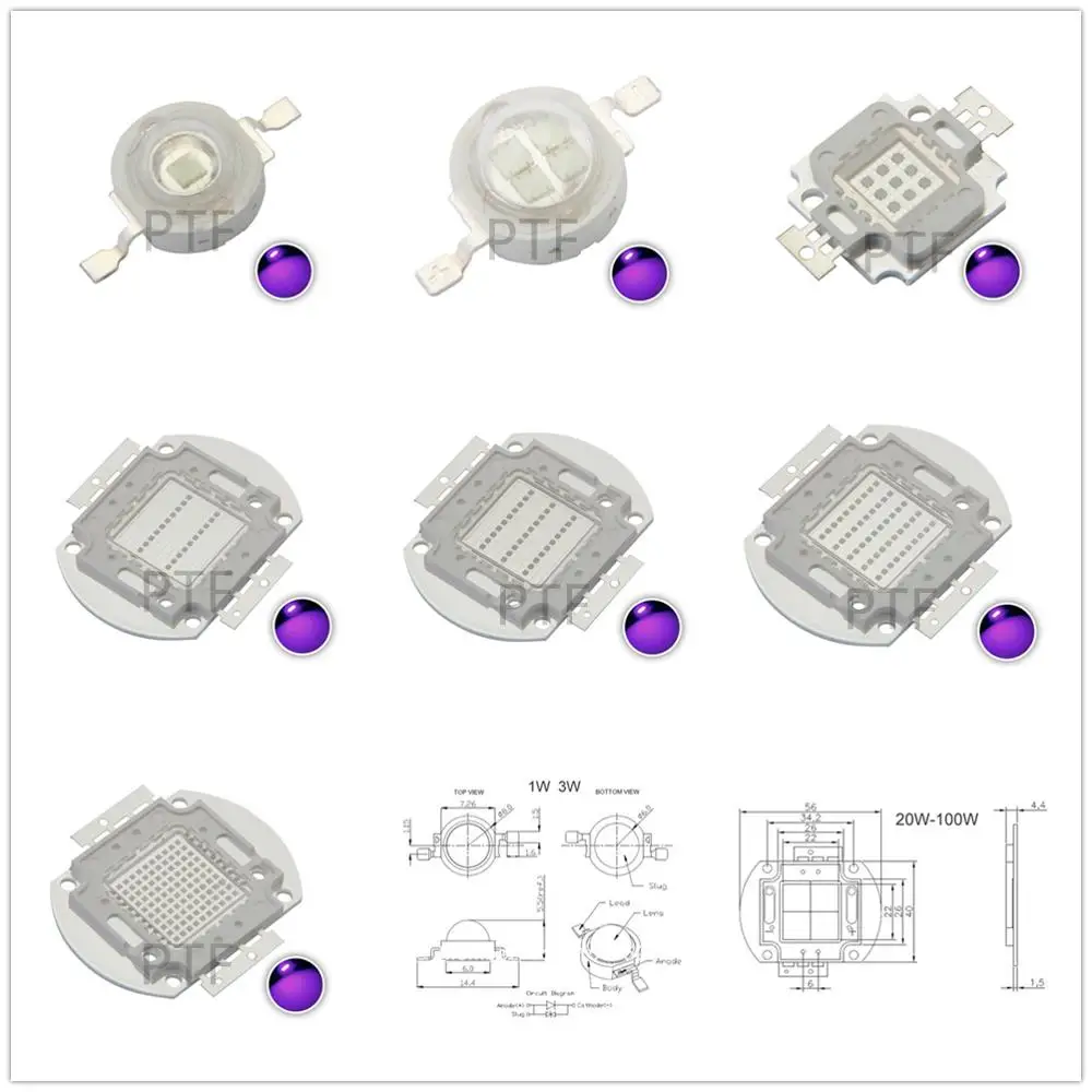 Светодиодный Ультрафиолетовый светодиод высокой мощности 360нм 365нм 370нм 380нм 390нм 395нм 400нм 405нм 1 Вт 3 Вт 5 Вт 10 Вт 20 Вт 30 Вт 50 Вт 100 Вт