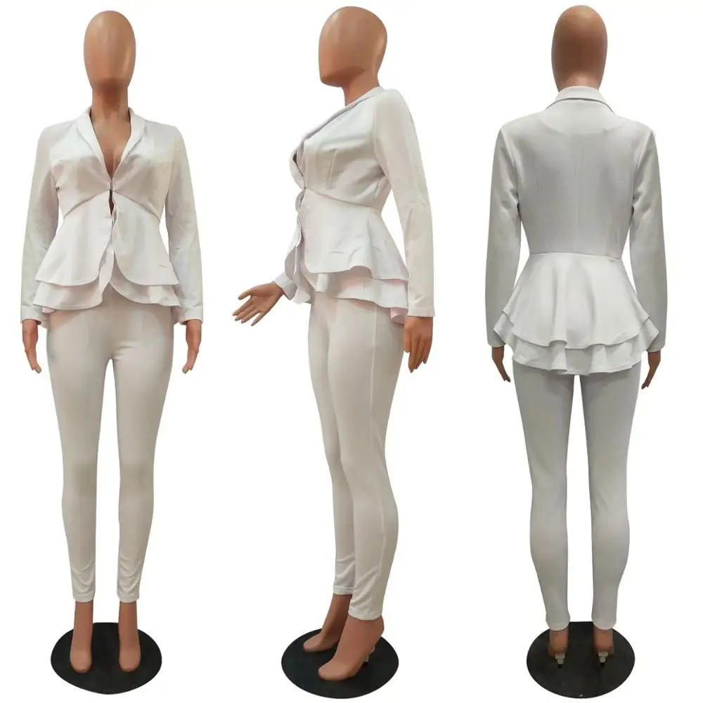 Adogirl, Модный повседневный комплект из двух предметов с оборками, однотонный блейзер с v-образным вырезом и длинными рукавами, пальто, узкие брюки, офисные дамские деловые костюмы