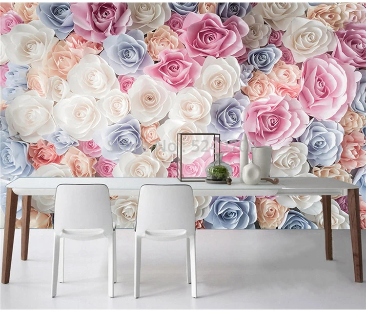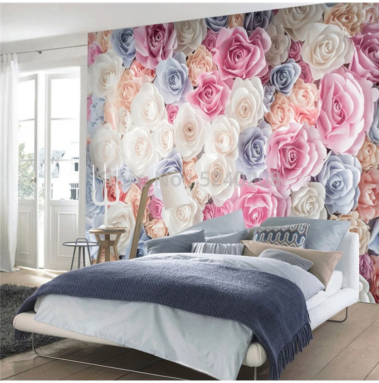 Самоклеящиеся обои на заказ, рельефные 3D-обои с розовыми цветами, ...