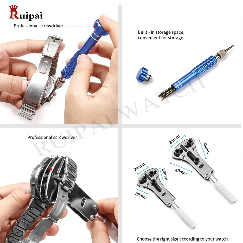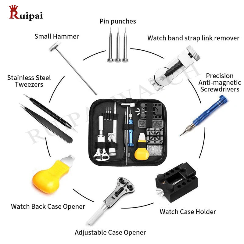 RUIPAI, 144 шт., инструменты для ремонта часов, чехол для задней крышки, пружинный штифт, ручное снятие, инструмент для ремонта, чехол