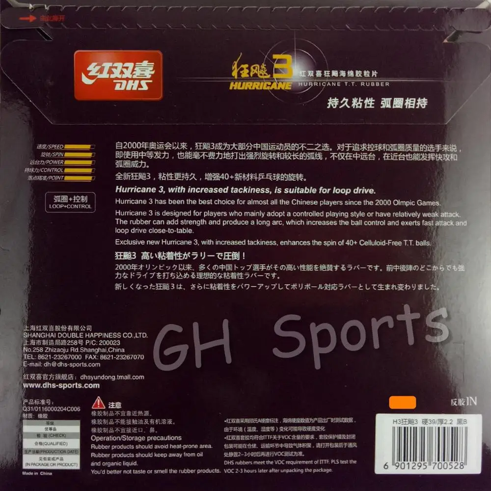 Резиновая губка для настольного тенниса DHS Hurricane 3 (H3 новая версия)