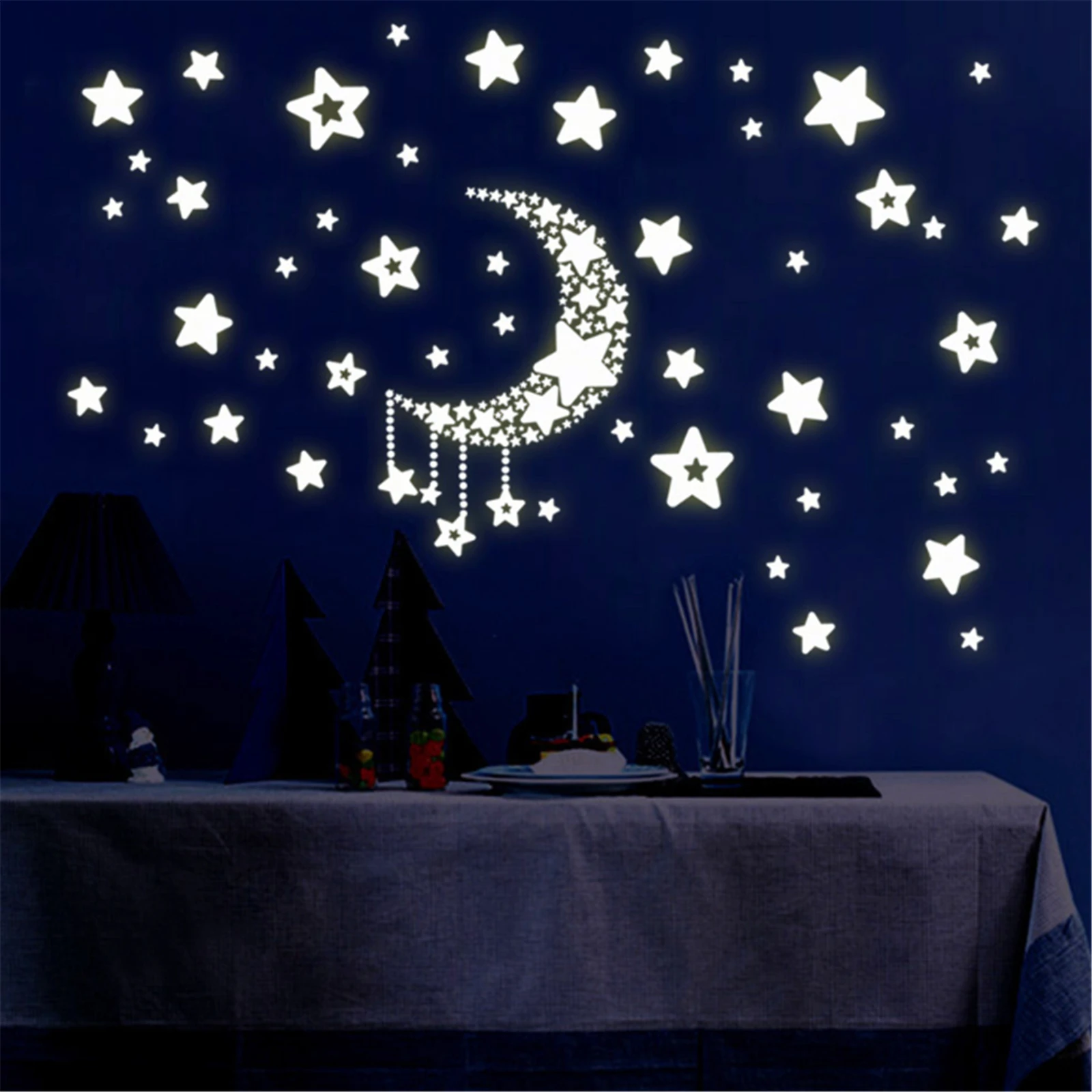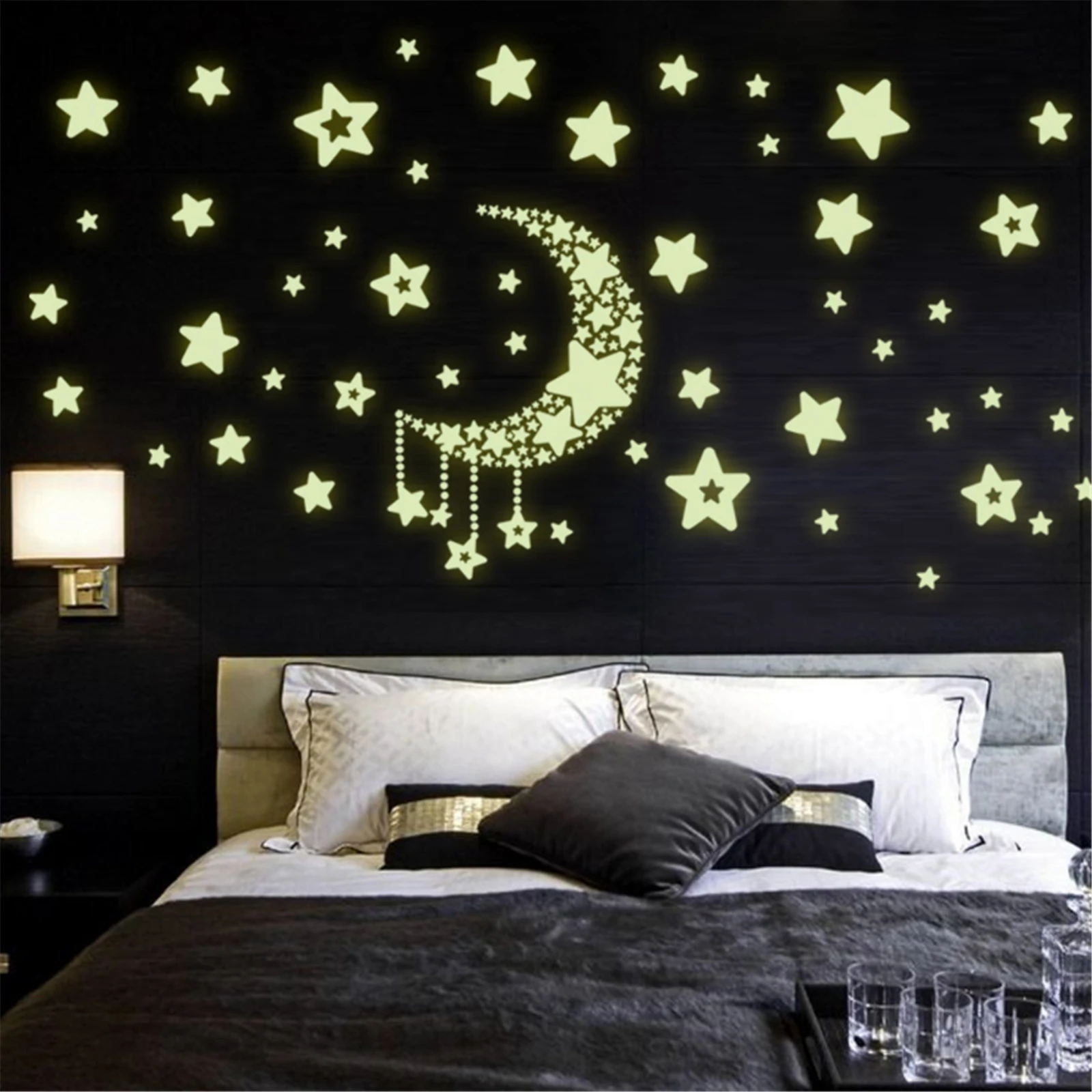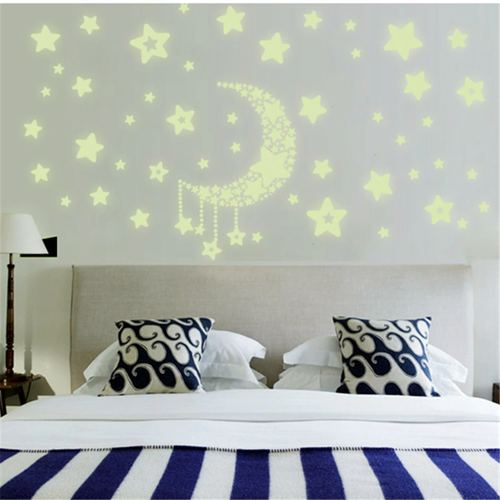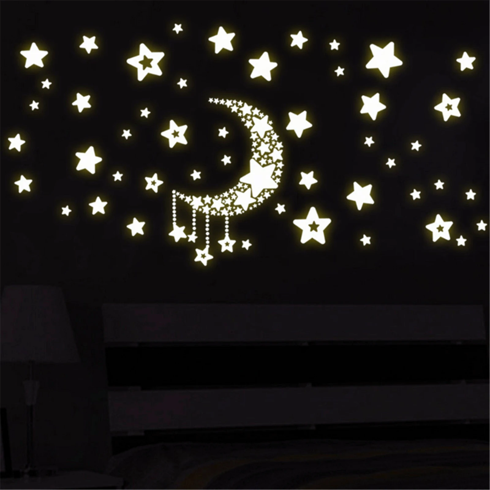 Флуоресцентная Настенная Наклейка Светящиеся звезды и луна s, настенная наклейка, домашний декор, наклейка для гостиной