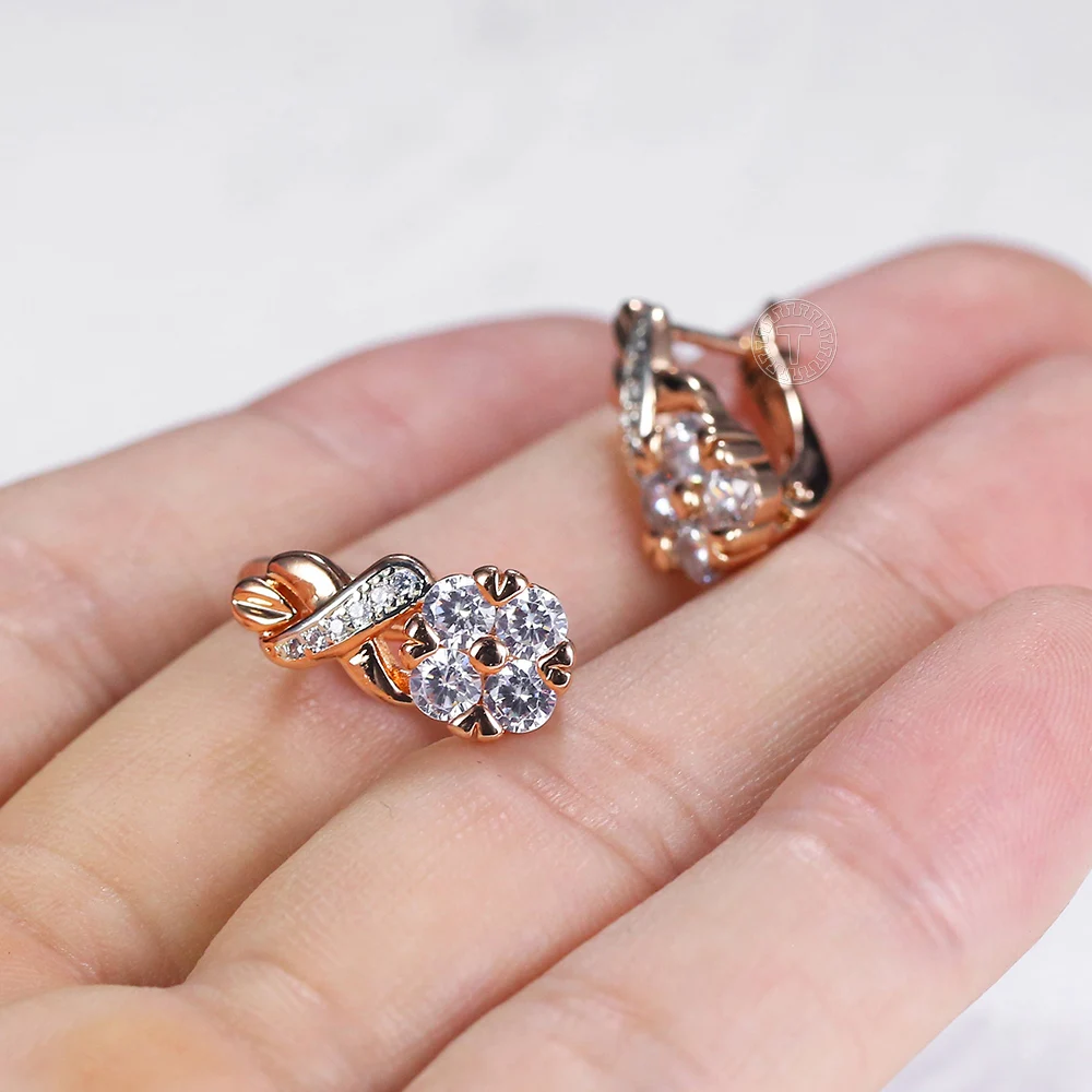 Женские серьги Davieslee из розового золота 585 пробы с цветами, зелеными, синими, черными камнями, ушные ювелирные изделия, серьги для женщин LGEM33