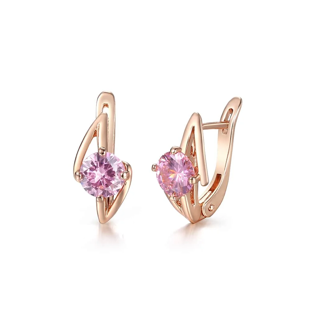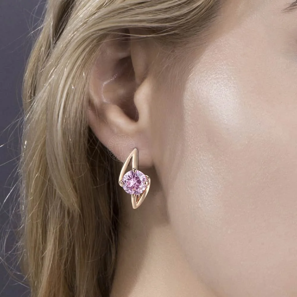 Серьги-гвоздики с прозрачным кубическим цирконием, наполненные розо...