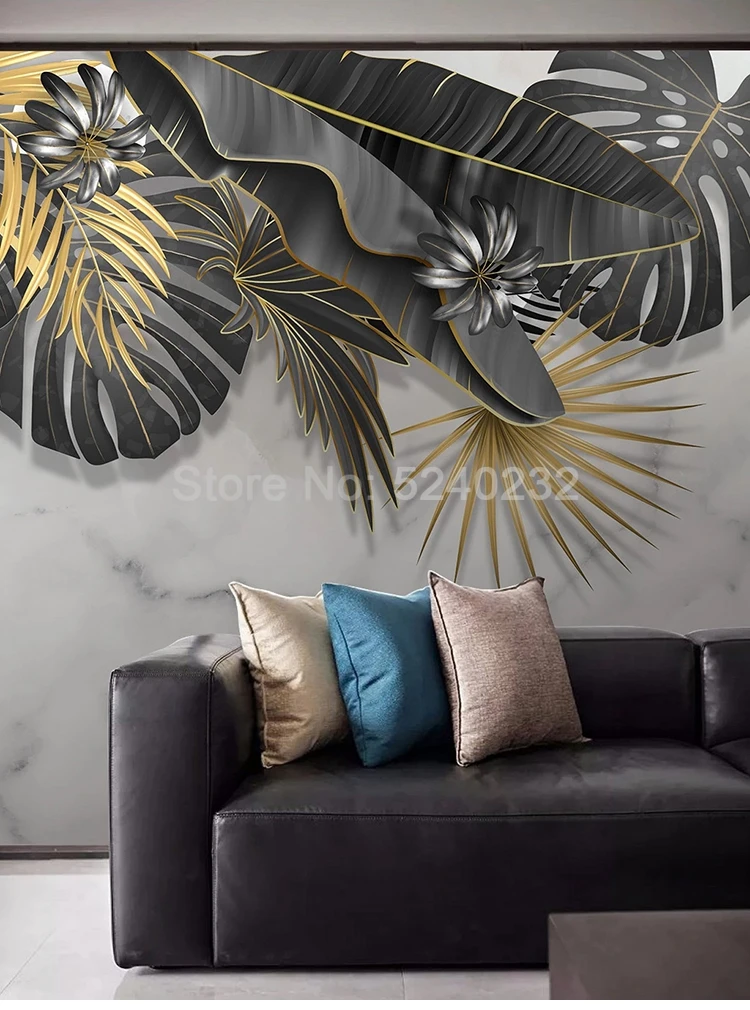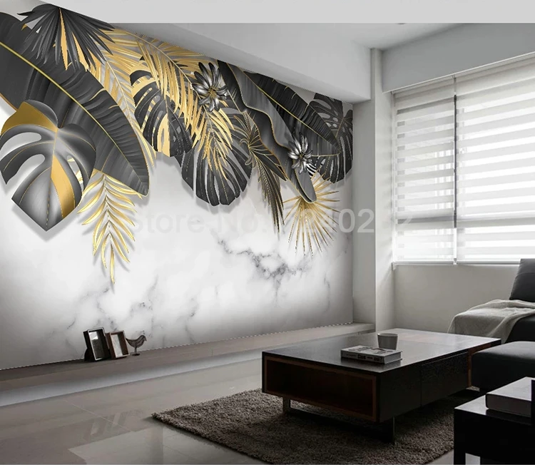 Настенные обои на заказ, лист тропического растения, Белая Мраморная 3D фотобумага для гостиной, спальни, фона за телевизором, декор для стен по искусству