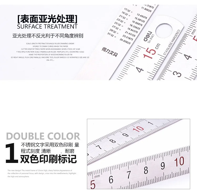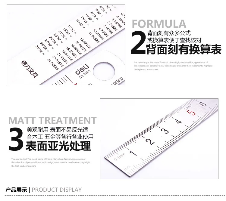 Линейка Deli из нержавеющей стали, многофункциональная, 152030см