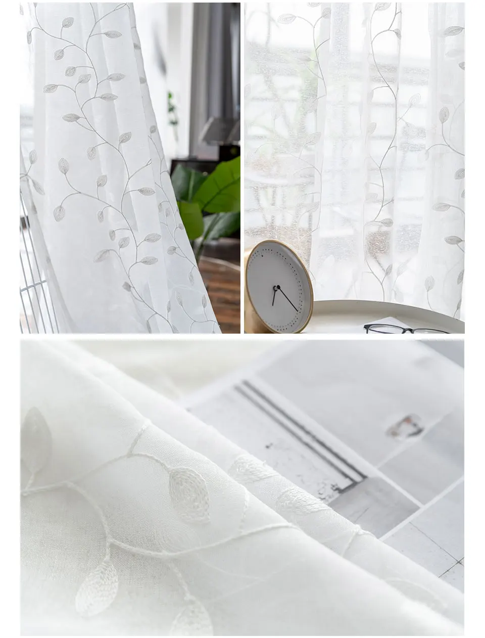 Шторы LISM с вышивкой листьев, прозрачные тюлевые занавески из вуал...