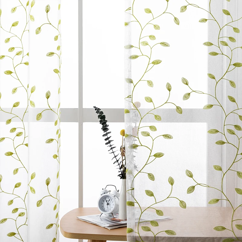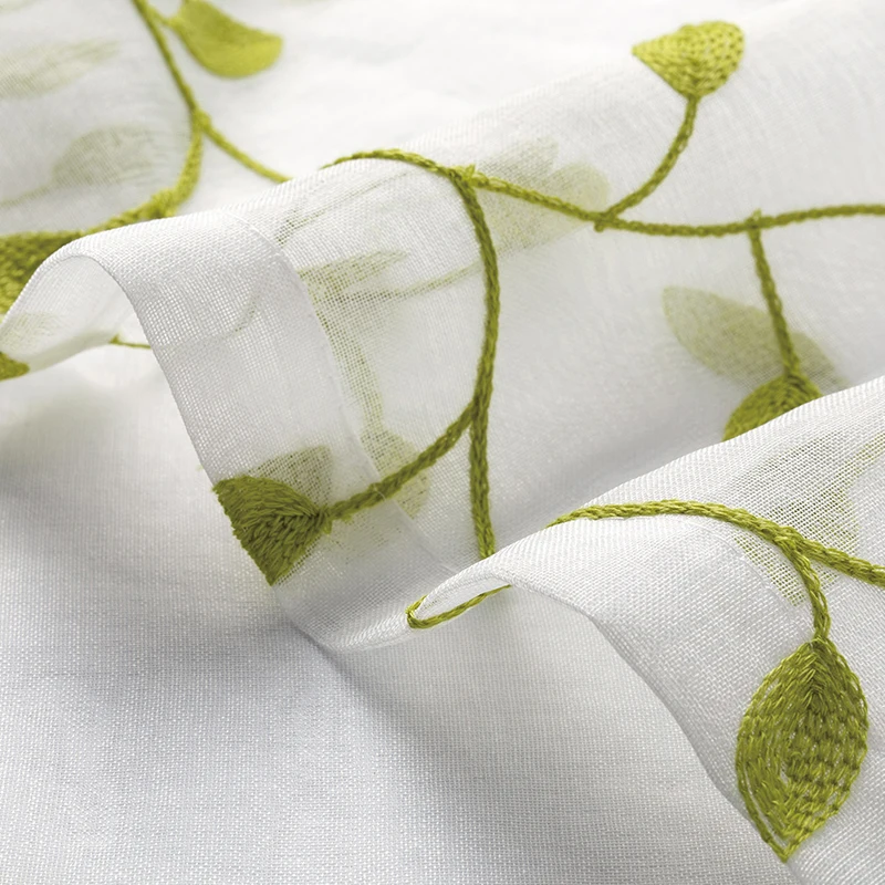 Занавеска из тюля для гостиной, спальни, кухни, с вышивкой листьев