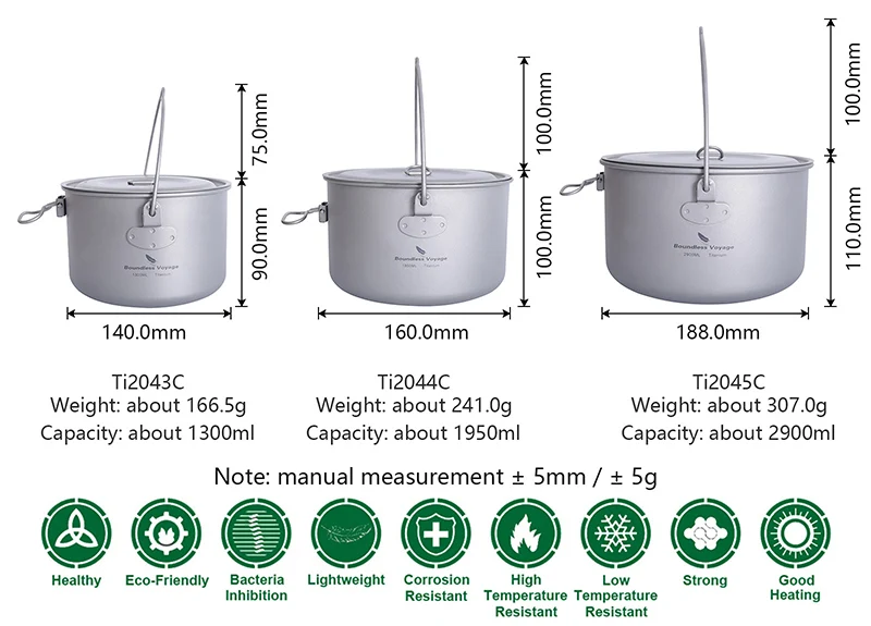 Титановый подвесной чайник для пикника, кемпинга, 1,3 л, 1,9 л, 2,9 л