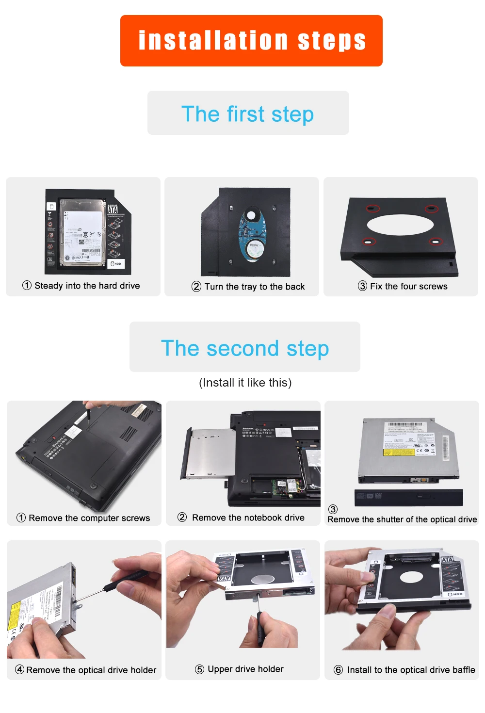 Краткое описание: 1. 100% новый и никогда не использованный товар; 2. Толщина данный переходник 12,7 мм; 3. Внутренний Интерфейс: SATA (для 2,5 "HDD/SSD или ssd диск); Внешний интерфейс: SATA (для ноутбука/материнской платы); 4. Поддержка SATA I & SATA II & SATA III; 5. 2-й жесткий диск Caddy/адаптер обеспечивает вам максимальную гибкость хранения данных. Со вторым HDD в вашем ноутбуке, 6. Вы можете ускорить резервное копирование важных приложений и критических данных (Просто удалите CD-ROM-накопитель и поместите на место Caddy (с дополнительным жестким диском). Особенности: 1. Plug & Play 2. Быстрое и надежное соединение так же, как основной HDD. 3. Полностью интегрирован в ноутбук, нет необходимости в кабелях/блоках/драйверах программного обеспечения. 4. Двойная Загрузка, поддержка установки 2-й операционной системы на 2-й HDD и выбор загрузки; 5. Светодиодный индикатор. Совместимость: Универсальный интерфейс SATA-to-SATA Совместим с ноутбуками, имеет 12,7 мм толщиной/высокая оптического устройства с интерфейсом SATA. Применимые модели ноутбуков: Для Lenovo: Y Серия: Y450 Y460 Y470 Y550 Y560 Y570 Y650 Y710 Y730 Серия V: V450 V460 V55 Другие серии: G450 B450 Z460 Z465 и так далее. Для Soyang:E46 E46L E43G E43A E43L E47 Для Thinkpad: SL300 SL400 SL400C SL410 SL410K SL500 SL500C SL510 L410 L410 L421 E40 E420 E425 E50 E520 E525 Для SONY: EA/EB/EE все типы Для серии HP(CQ): CQ35/40/41/42/45 Для серии DV: DV3 4 5 6 7 8(CD-ROM интерфейс SATA) 4410S/4411S 4413S/4415S4416S/4421S 4425S/510 511 515 516 520 6730P/6930P/6535B/6440B и так далее. Для ACER: 4750 г/4551 г 4552 г 4810 т 4820T4740G 4741 г 4745 г 4738Z AS7739Z 5742 г Для ASUS: A Серия: A40/A41 A42 A43 A43S/A52/A72 Серия K: K42 K43/K52/K50/K51/K72 Серия N: N42/N43/N52/N53/N71/N81 Для Hasee: A350 A400 A410 A420 A430 A450 A460 A470A500 A550 A560 A570 A580 K360 K470 K480 Для Dell: N4040 M4010 750 760E.TM15X Посылка: 1 х 12,7 мм HDD Caddy 4 x винт