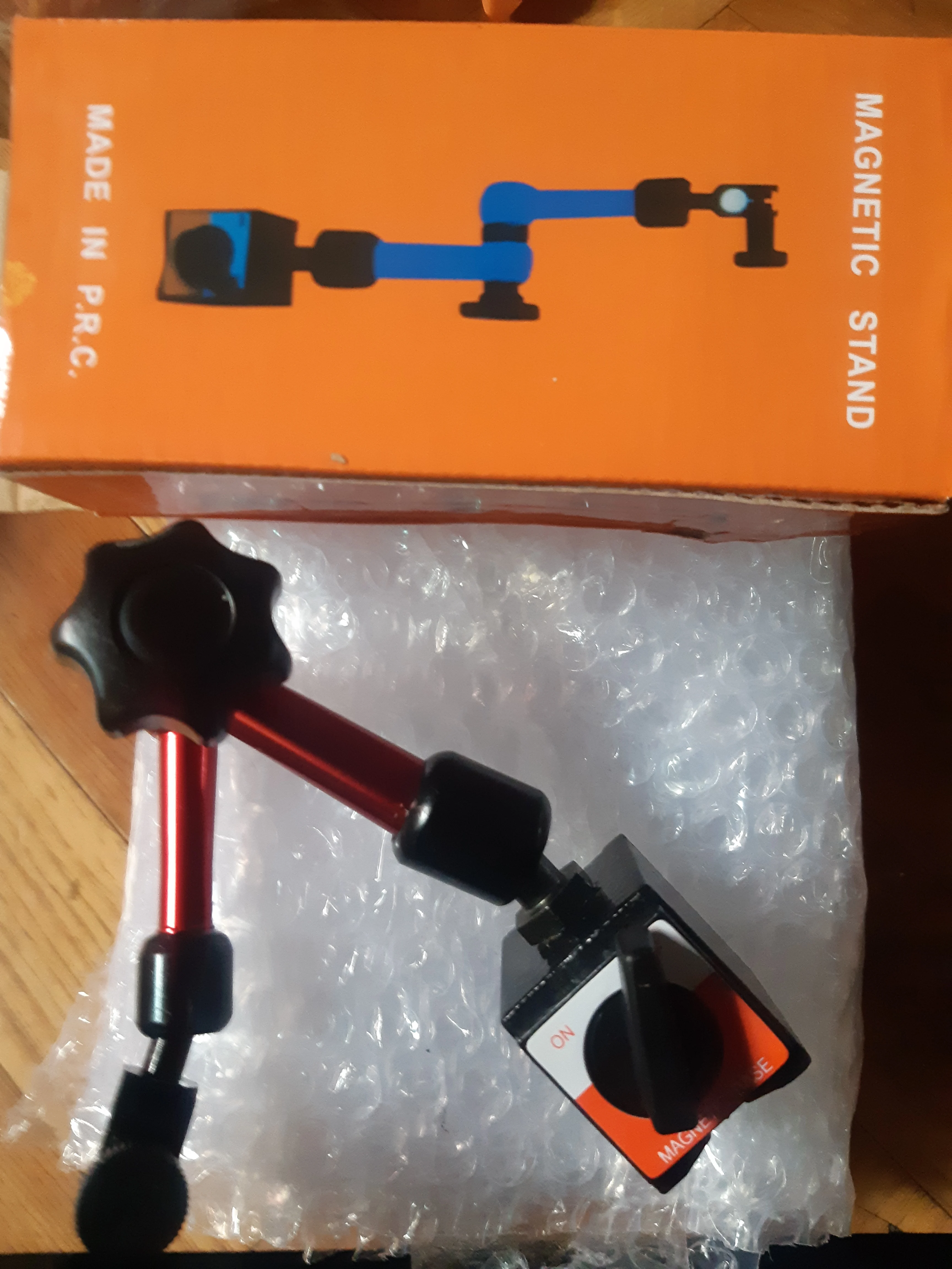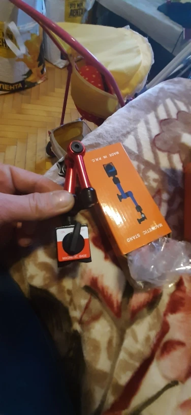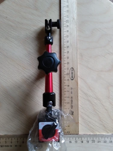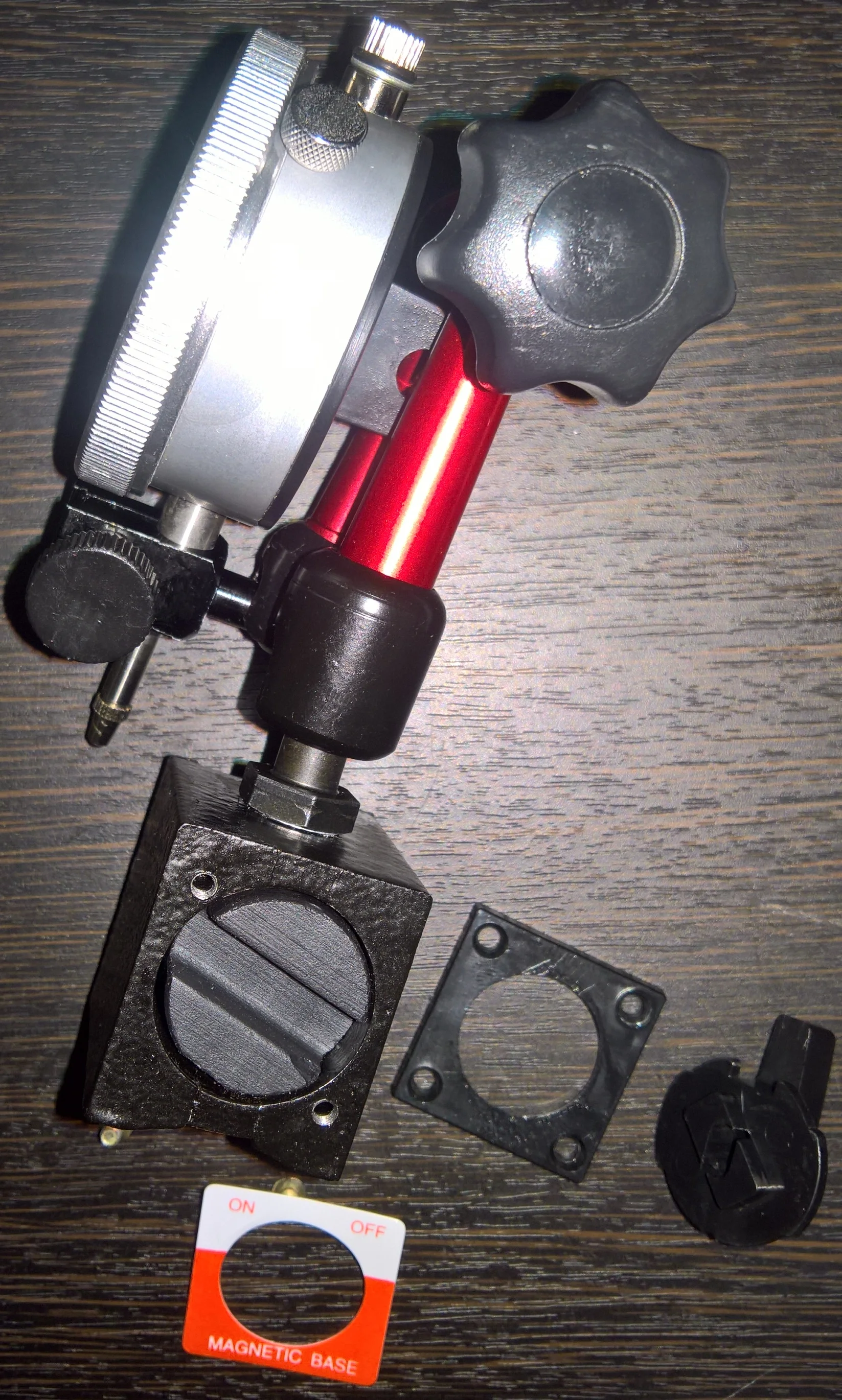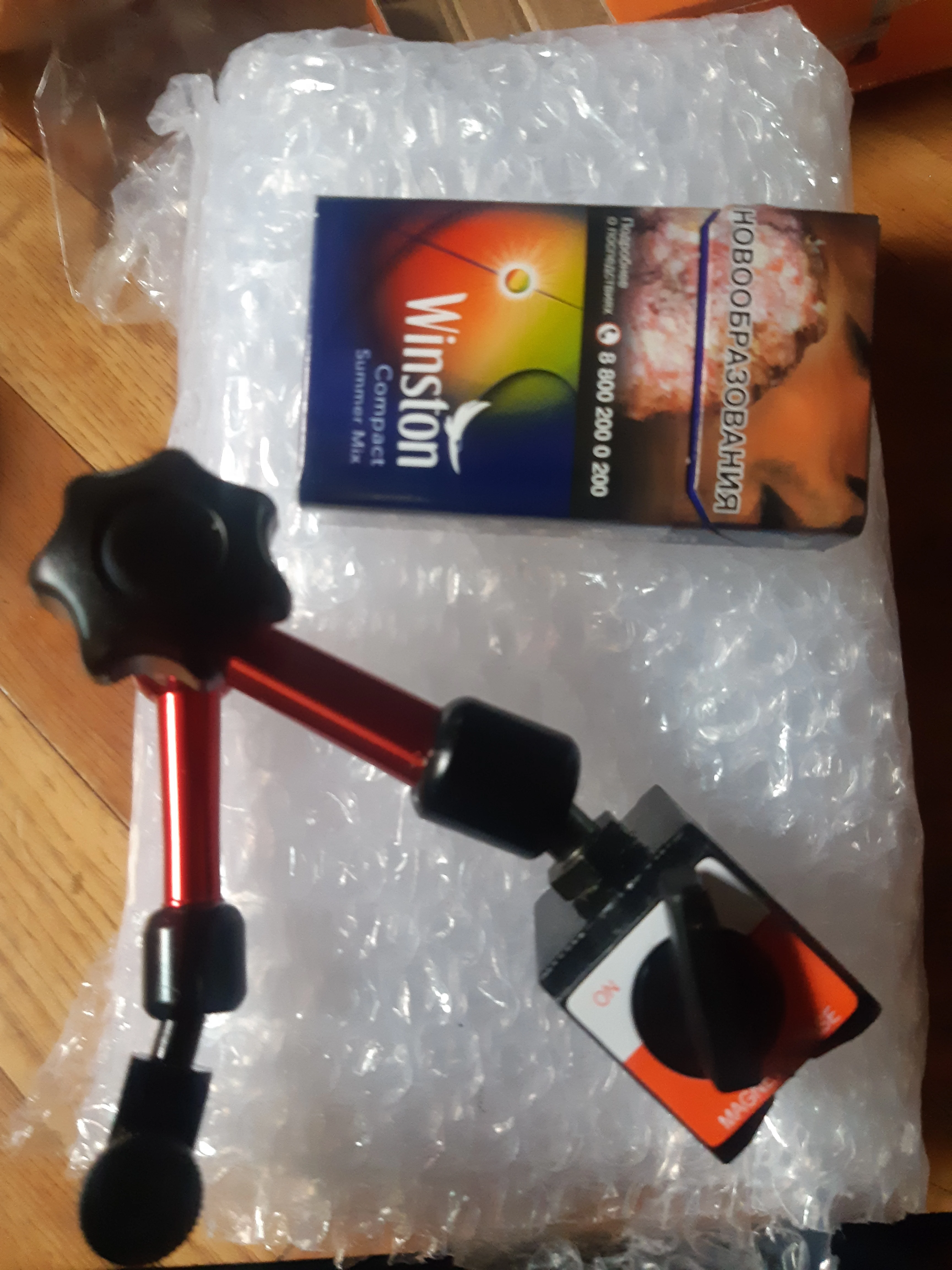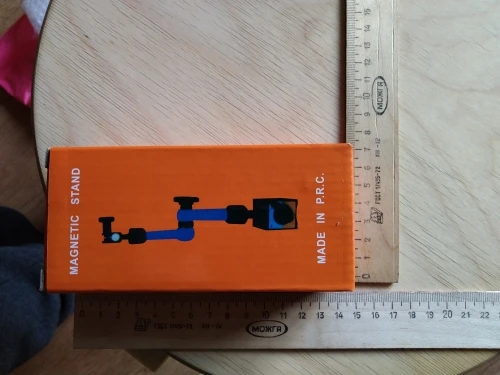 основание стойки очень хлипенькое. магнит на окрашенной поверхности под 45 градусов к горизонту практически не держит, всё ёрзает. подставку буду переделывать. Индикатор нормальный. доставили за 14 дней.