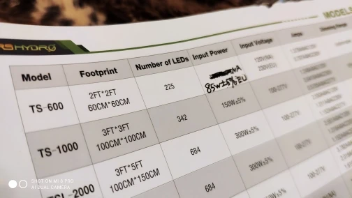 Очень очень очень мощный. Я пытался сделать клоны, и все в порядке.... 90 см Высота 10000lux... Я рекомендую диммер. Очень хороший светодиод, кроме этого. Отправлено быстро и хорошее обслуживание клиентов. Большое спасибо. Я очень рекомендую этот бренд и продавца