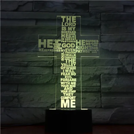 3D светильник с крестом, цветной сенсорный светодиодный Usb-ночник с визуальным светом, новинка, светодиодные 3d светильники Luminaria Usb, светильник с внешним аккумулятором для детей 1668