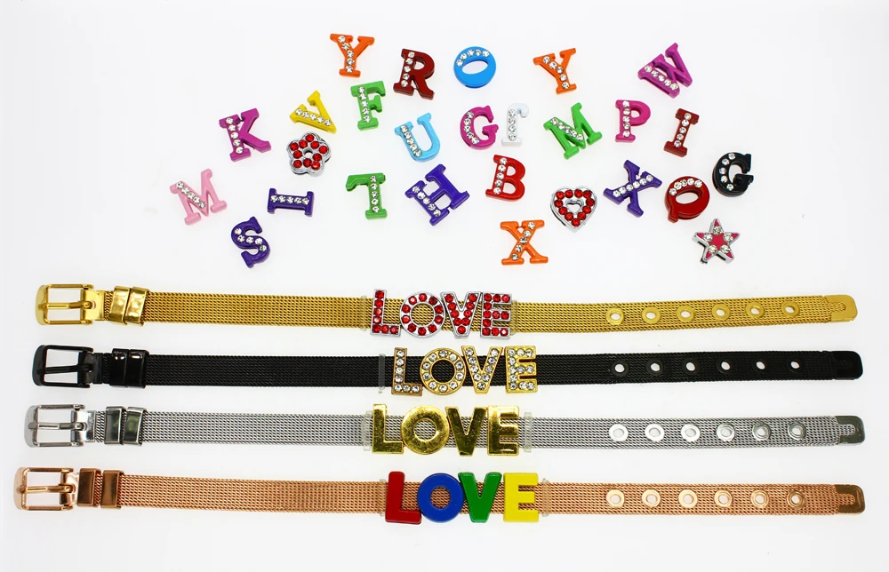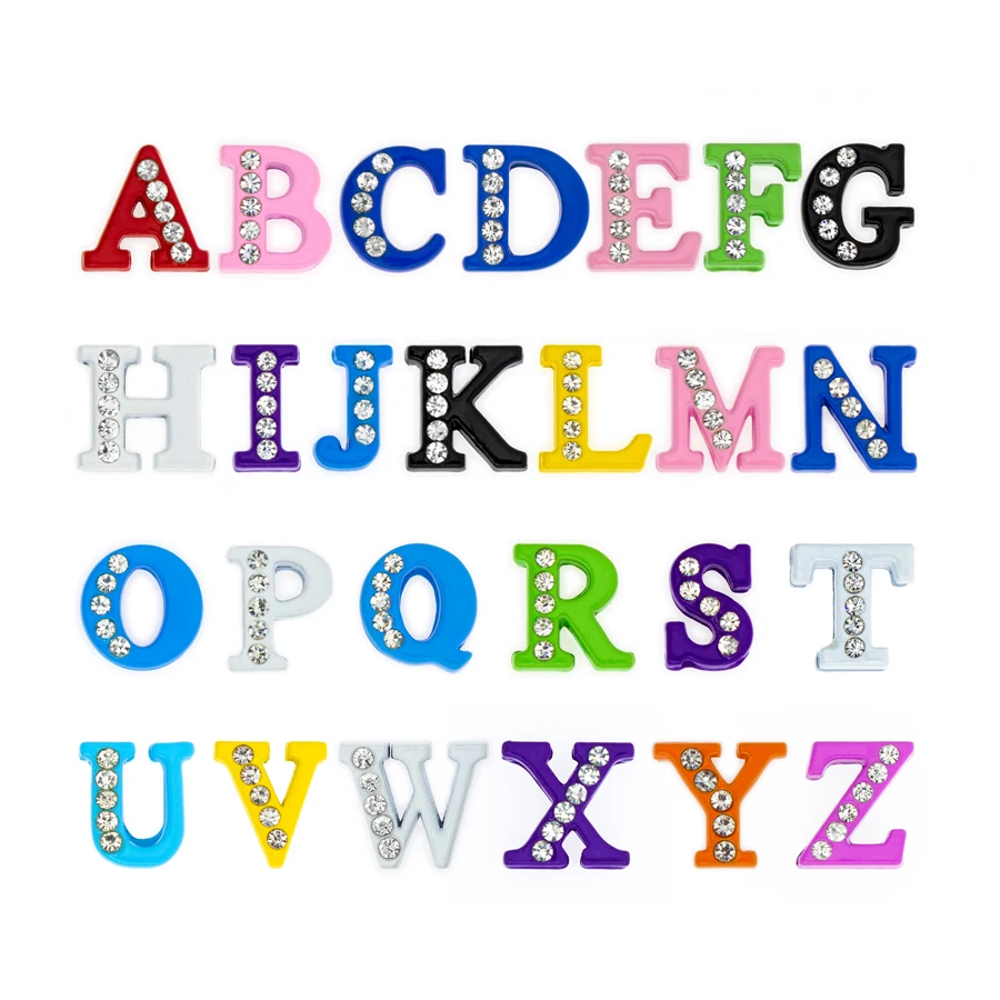 Высокое качество направляющих очаровательных буквВы можете сделать своими руками, чтобы положить любые буквы вместе на повязках или ошейниках для домашних животных, как ваши собственные словаСамые популярные и модные стразы из цинкового сплава с буквами английского алфавита,