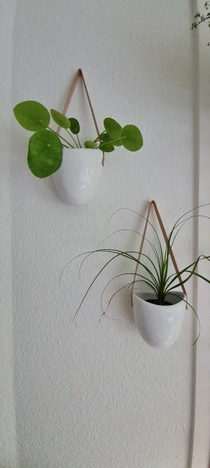 Набор из 3 керамических подвесных цветочных горшков для суккулентов, горшков с кожаным ремешком, настенных цветочных горшков, украшение для дома и сада