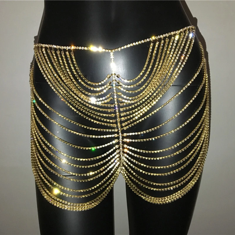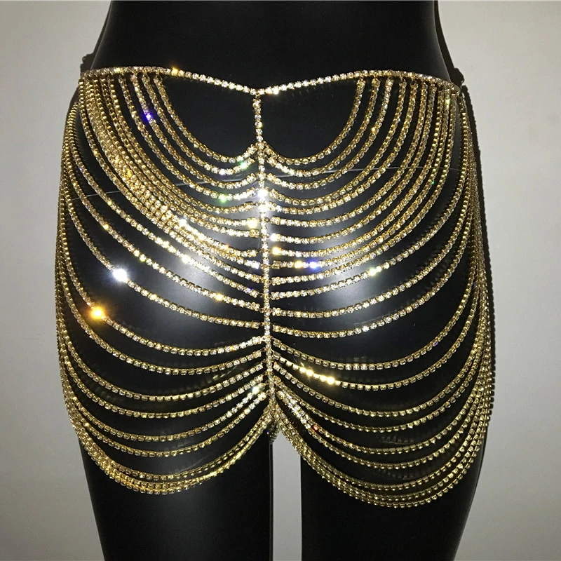 2022 блестящая женская юбка с цепочкой и кристаллами, летняя сексуальная юбка ручной работы для вечеринки, ночного клуба, шорты, юбка, наряд