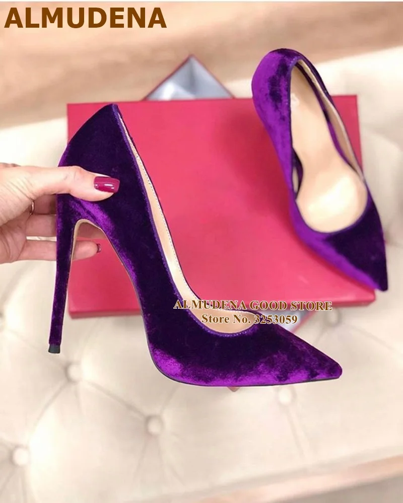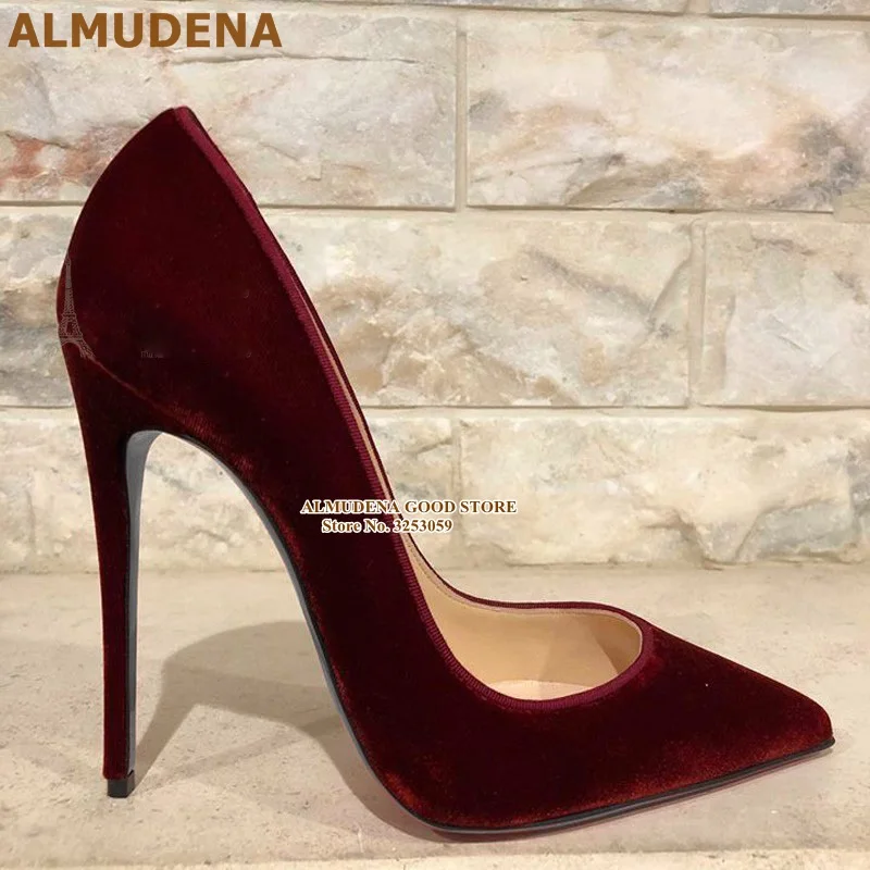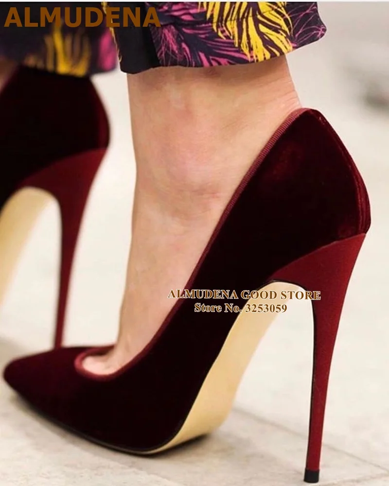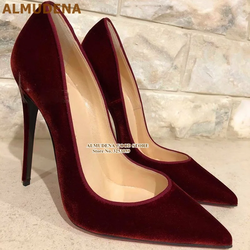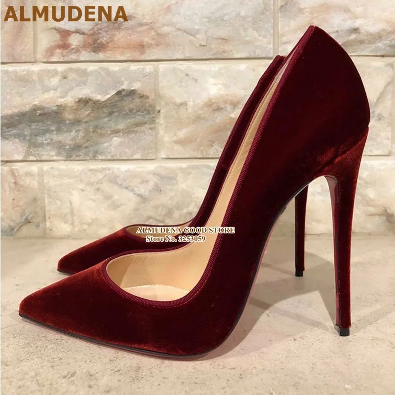 Туфли-лодочки ALMUDENA на высоком каблуке 12 см, бордовые, фиолетовые, с острым носком, свадебные, Прямая поставка обуви