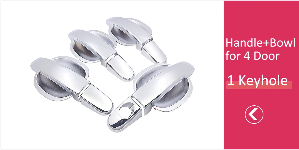 Сделайте свой автомобиль выделенным из толпы с этими 4 высококачественными стильными хромированными дверными ручками крышки! Пластмасса высокого качества придает этим покрытиям глубокий и глянцевый хром блеск! Они специально разработаны для вышеуказанных моделей и идеально подходят! Они оснащены высокопрочной клейкой лентой 3 м сзади, просто снимите ленту и нанесите! Занимает несколько секунд, никаких инструментов не требуется! Это действительно придаст вашей машине крутой новый вид!