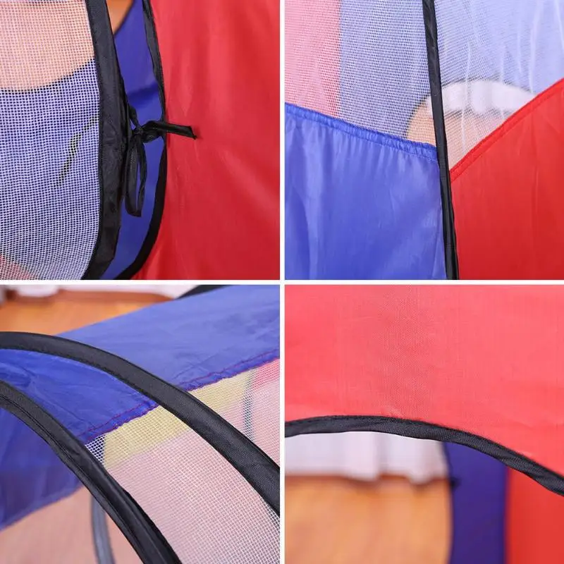 Размер продукта:Туннель: 111 см/43,7 дюймаТреугольный домик: 100*83 см/39,37*32,68"Квадратный Дом: 83*77 см/32,68*30,31"Цвет: синий и красный цветаПодходящий возраст: старше 1 годаМатериал: ткань из полиэстераВ комплект входит: сумка из полиэстераАксессуары для продукта: без кронштейна