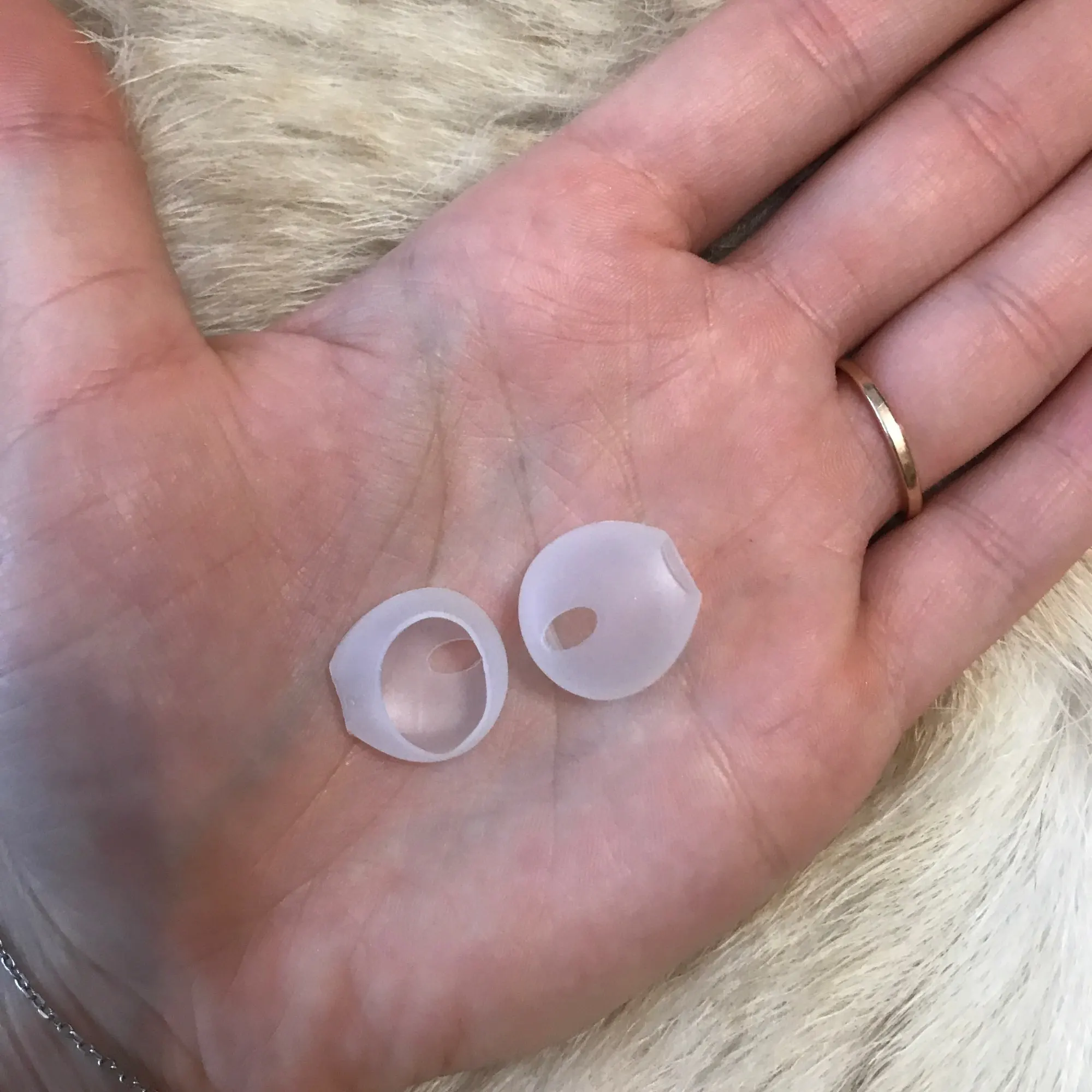 Брал для SOUNDPEATS TrueAir2 ,отлично подошли,до этого другие брал тонкие(слетали когда из уха доставал),а эти резиновые(не силикон) отлично держат в ушах.