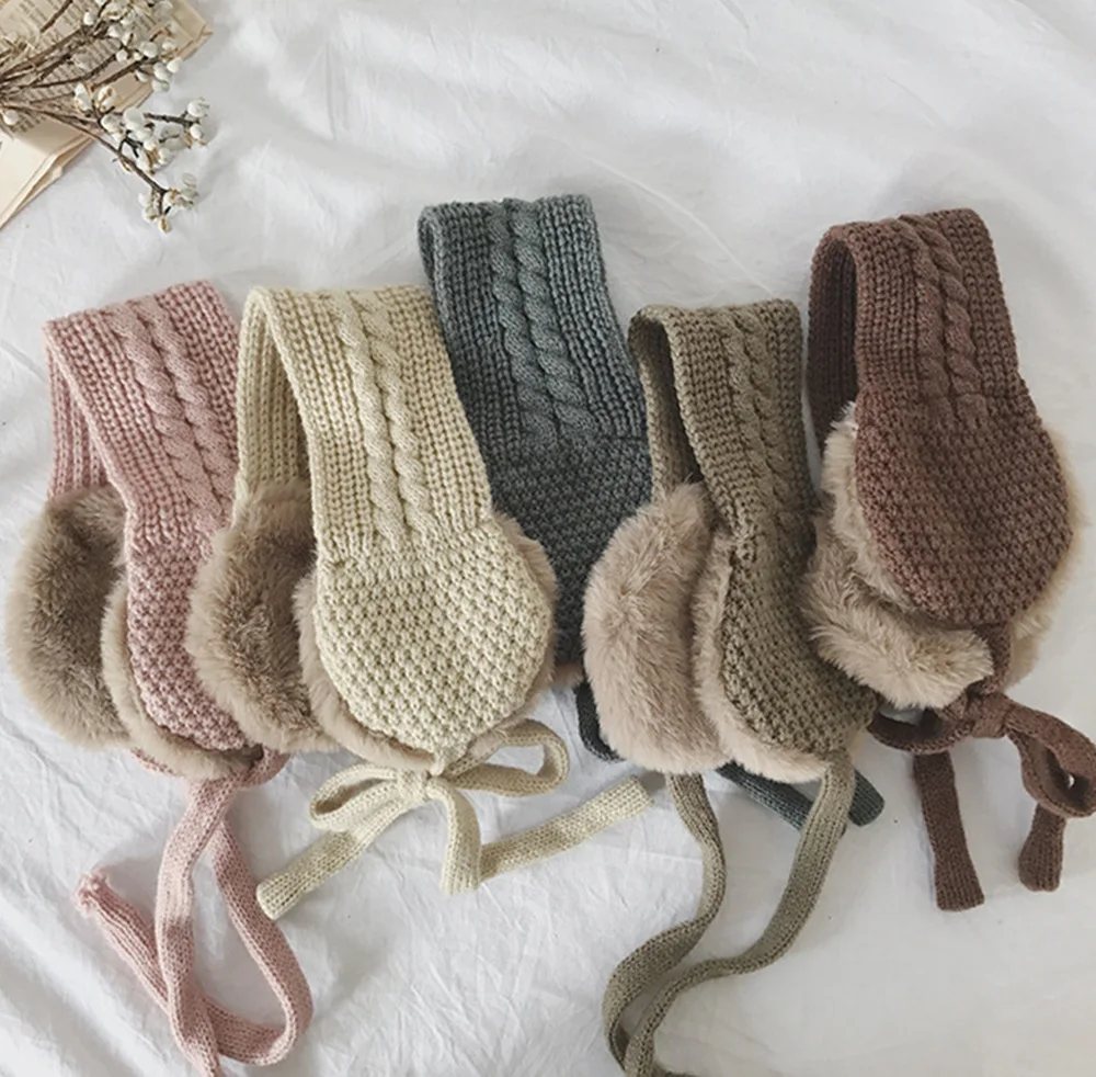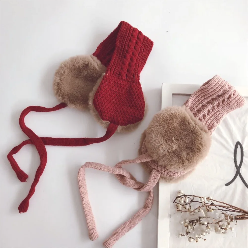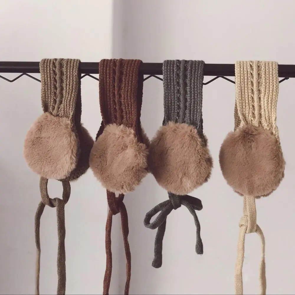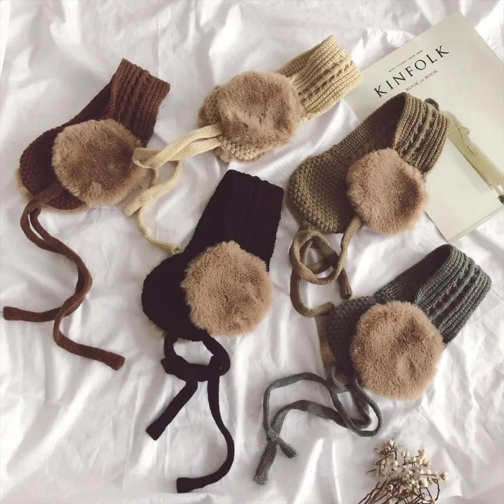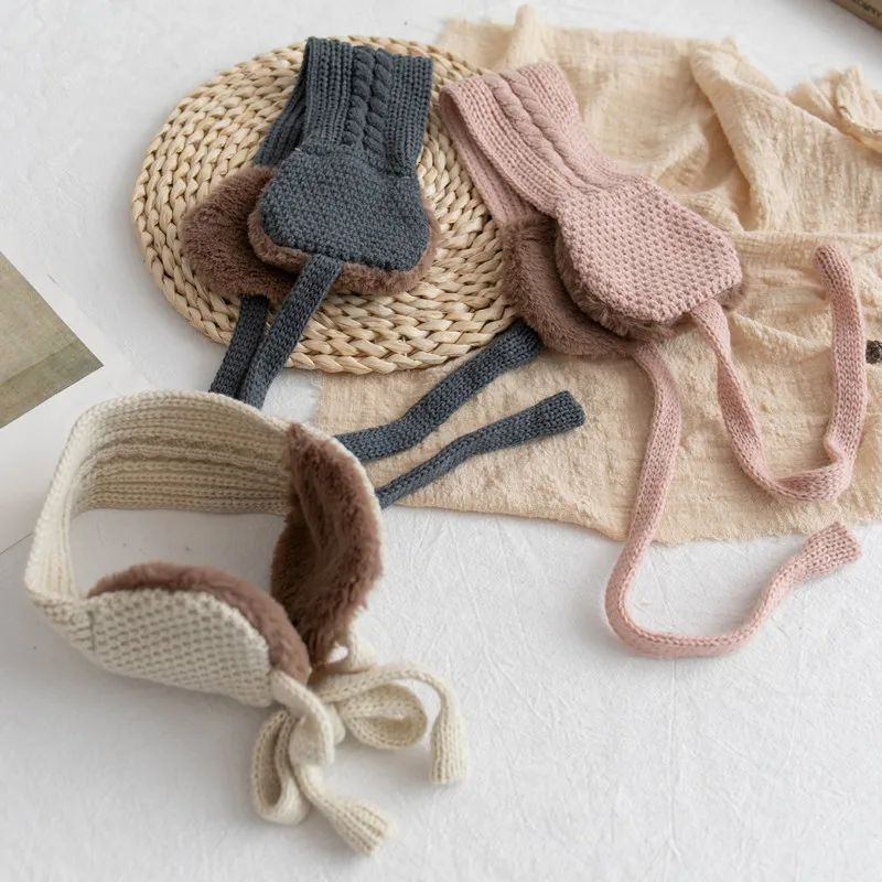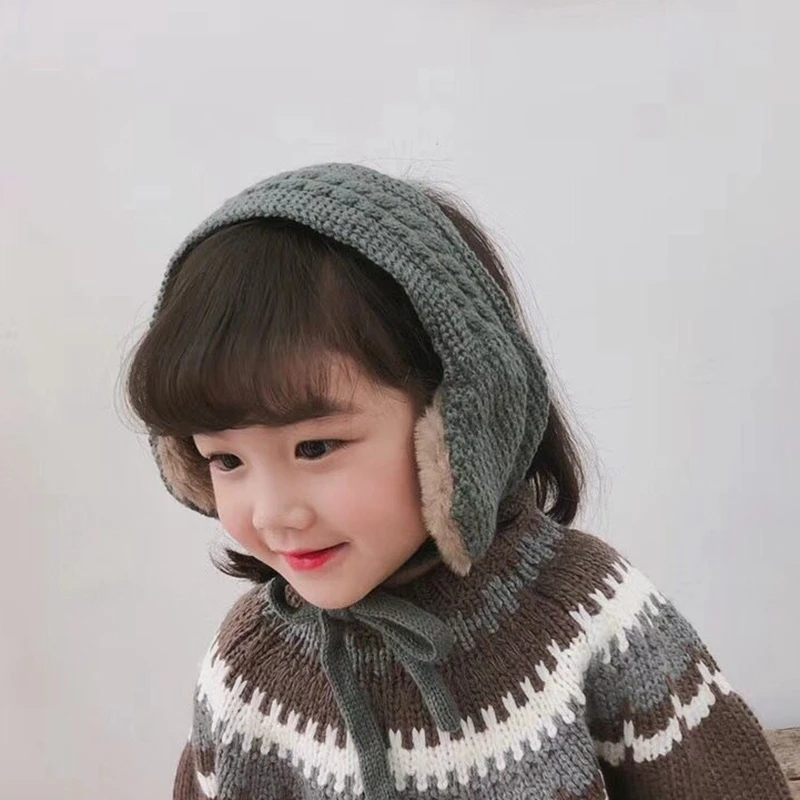 Зимняя шапка, детский вязаный шарф для малышей, замшевые наушники для девочек и мальчиков, Детская Регулируемая шерстяная вязаная модная шапочка