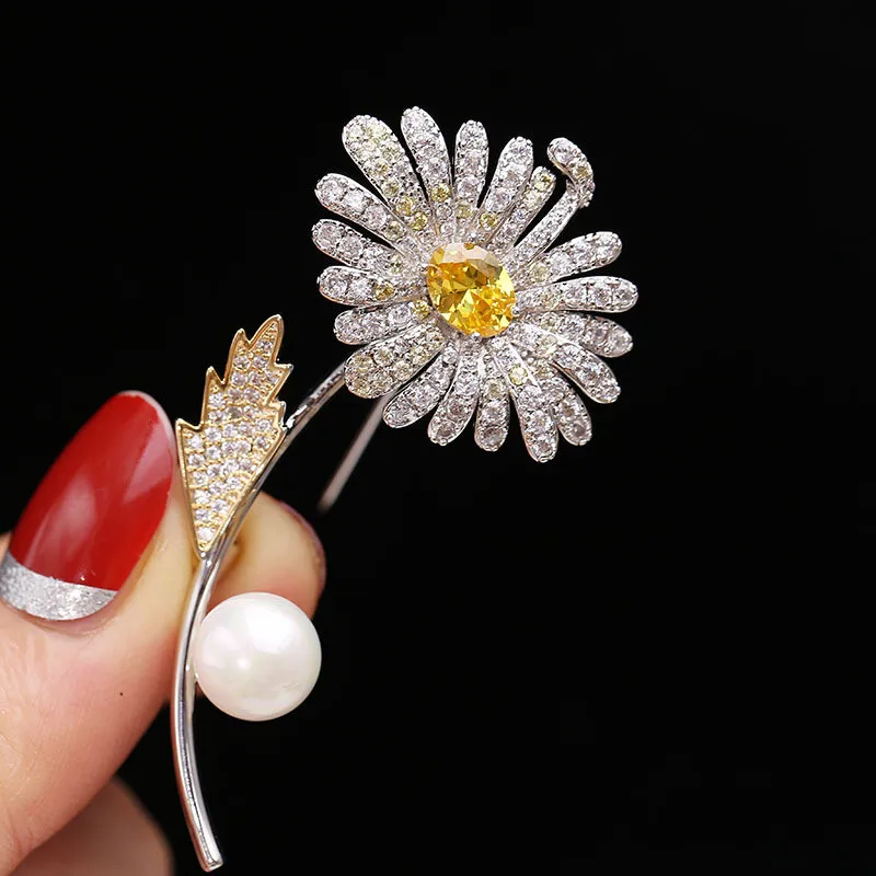 Элегантые с изображением подсолнуха, броши на булавке с имитация жемчуга, для плетения браслетов для женщин пальто свитер Happyiness Брошь ювелирные аксессуары