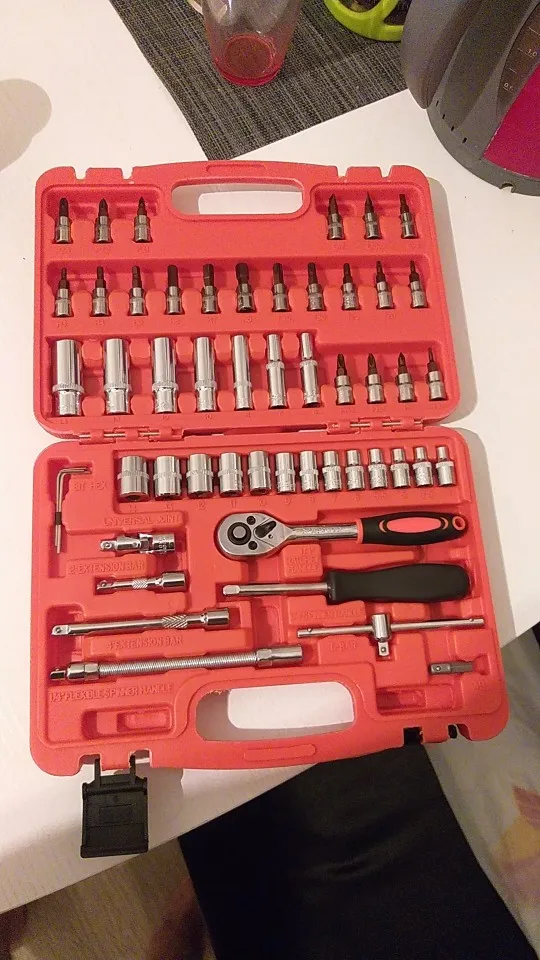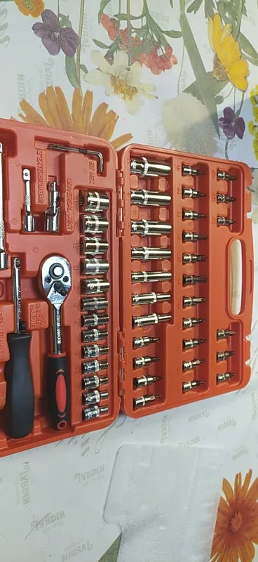 набор пришёл за 6 или 7 дней, набор понравился, очень функциональный, мне для электрики есть все отвертки, головки только до 14, но у меня есть взрослый набор на 1/2 до 27, как раз не было малышей удлинённых и гибкого вала, поэтому я доволен, единственный минус 53 предмет сам кейс