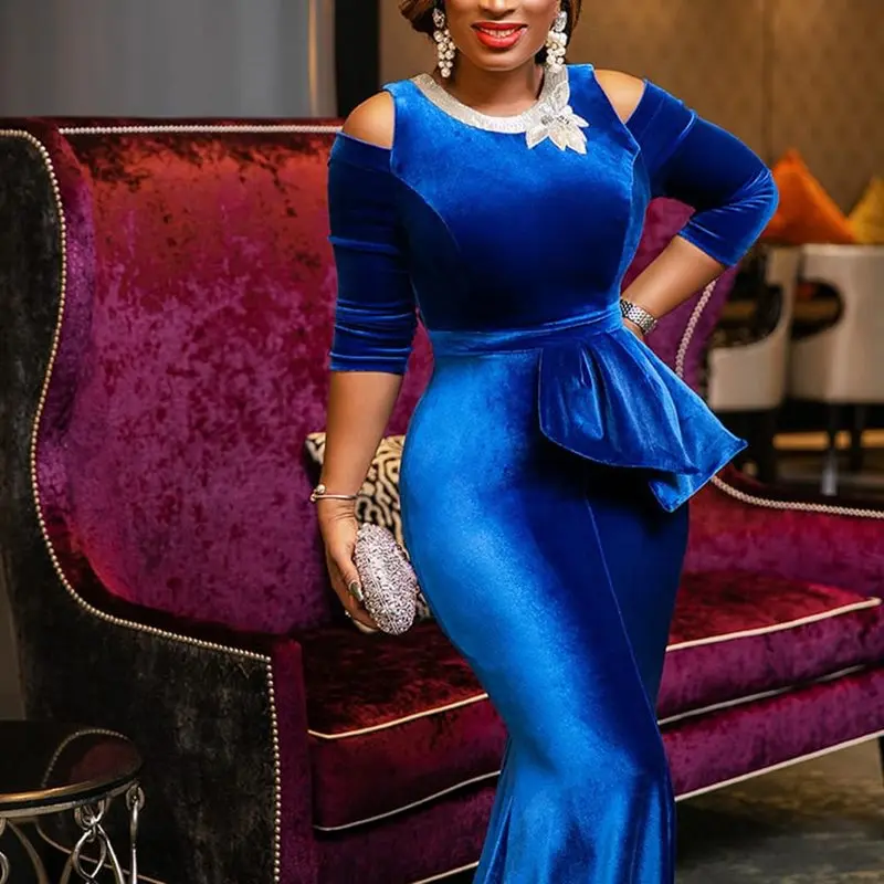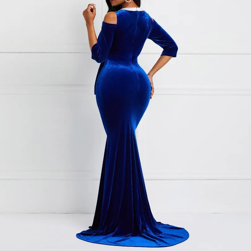 Женское вельветовое платье-русалка, длинное винтажное вечернее праз...