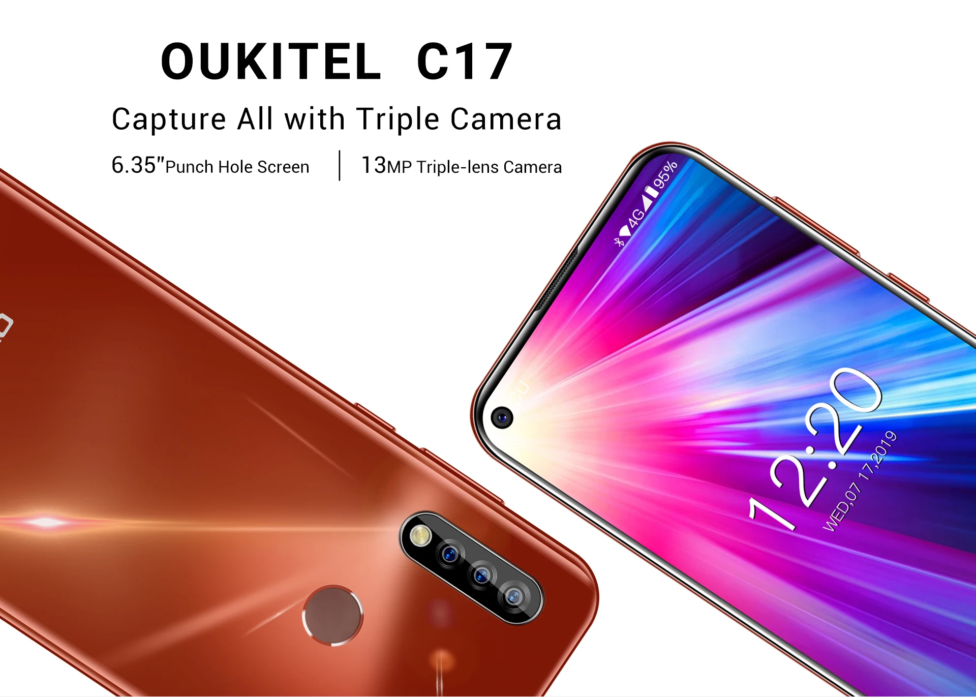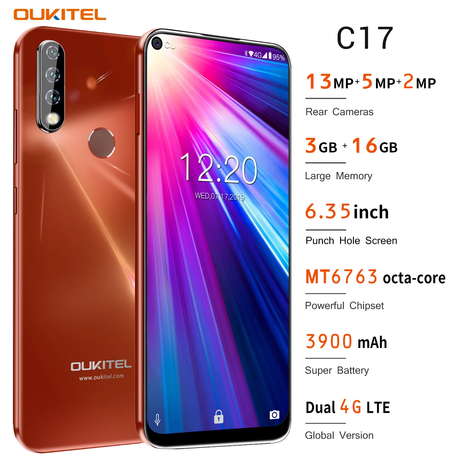4G мобильный телефон OUKITEL C17 Android 9,0 смартфон 6,35 ''распознавание лица отпечаток пальца Восьмиядерный 3 Гб 16 Гб 3900 мАч Тройная камера MT6763