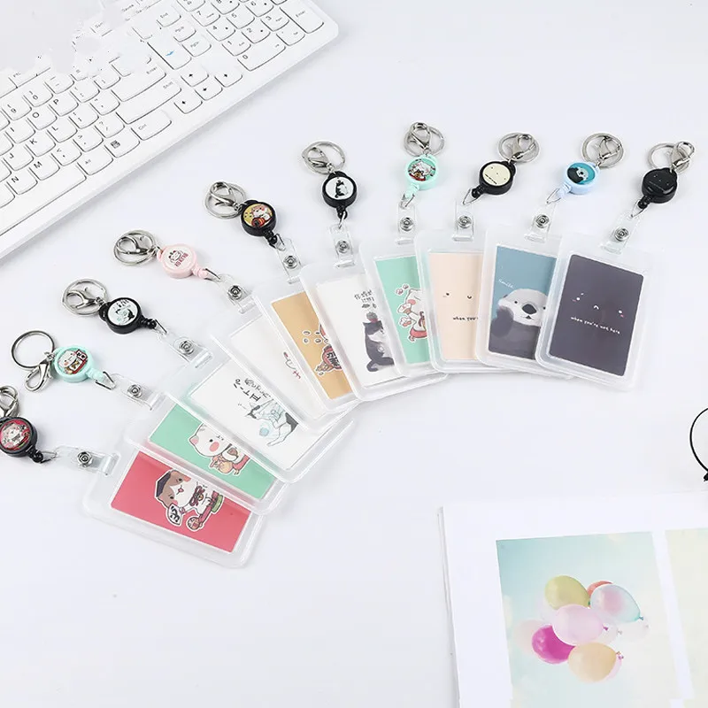 Держатель для визиток для мужчин и женщин, милый выдвижной чехол для банковских карт, удостоверения личности, бейджа, детского автобуса