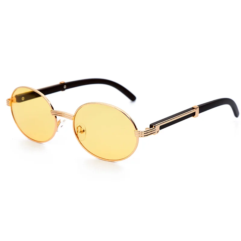 Очки солнцезащитные мужские в круглой металлической оправе, модные, в винтажном стиле, с желтымирозовыми линзами, с защитой от ультрафиолета, 2019