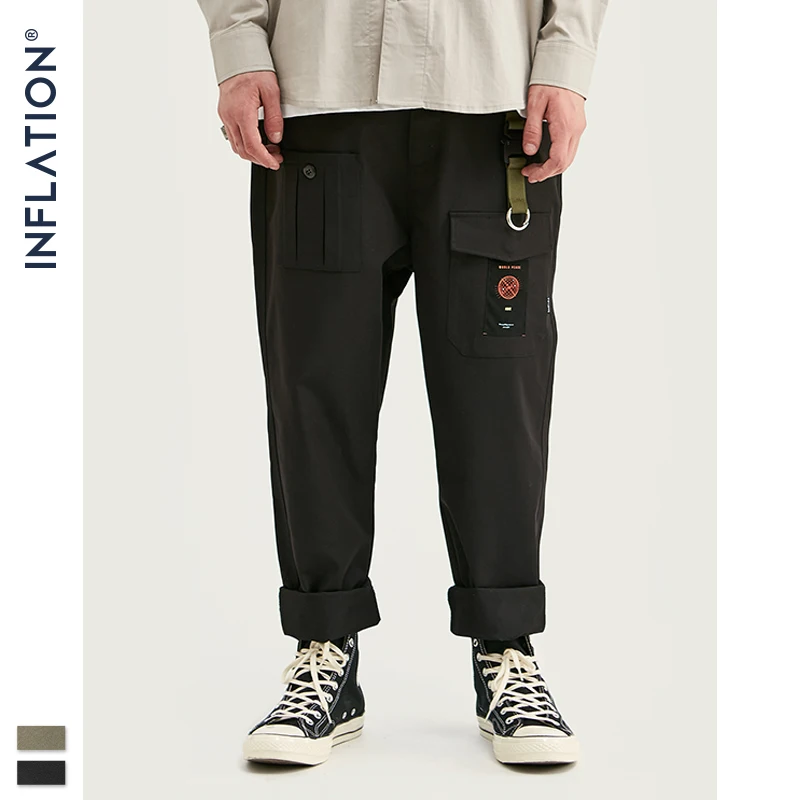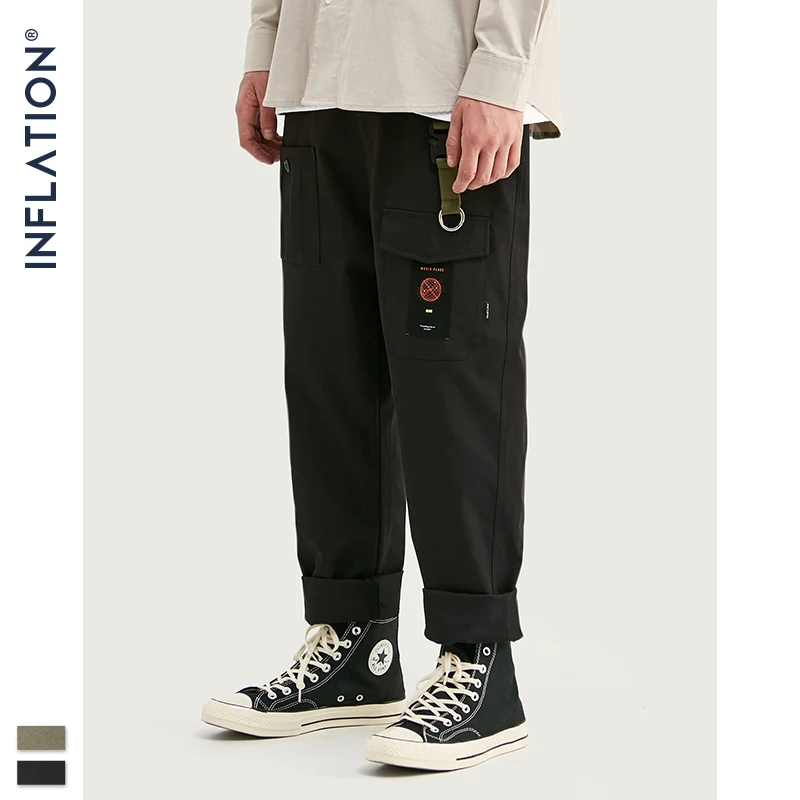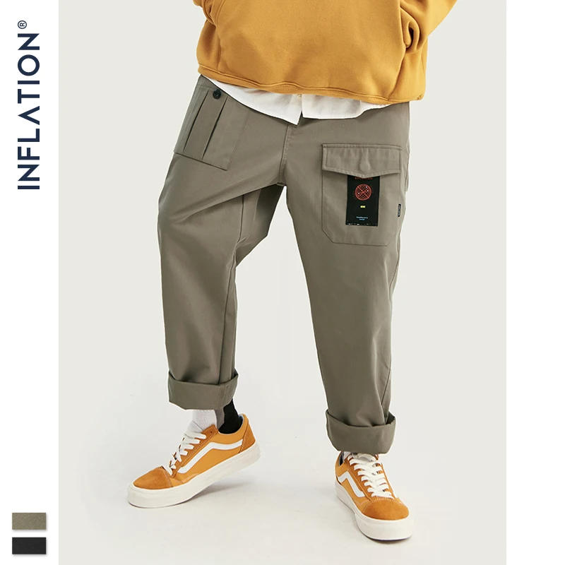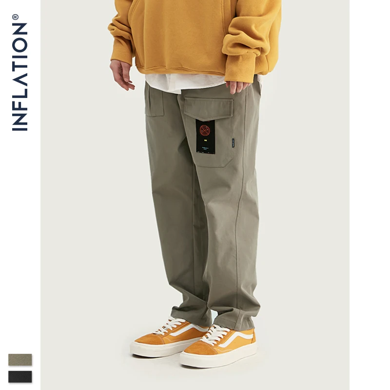 Инфляционные свободные прямые мужские брюки-карго, осень 2020, уличная одежда, функциональные карманные мужские брюки, хип-хоп однотонные мужские повседневные брюки 93341W