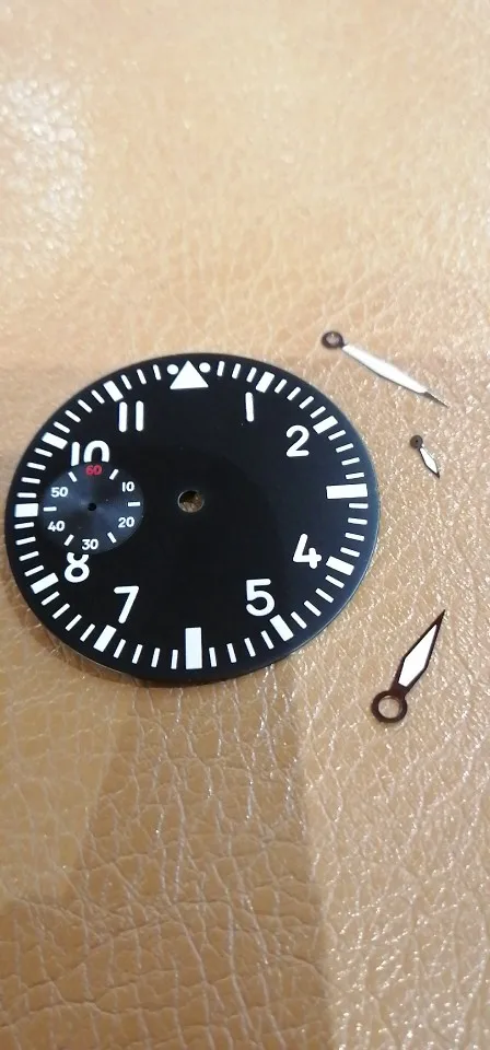 Набор для часов, черный циферблат 38,9 мм + 2 минутысекундные стрелки, зеленые светящиеся запасные части, подходят для ETA 6497