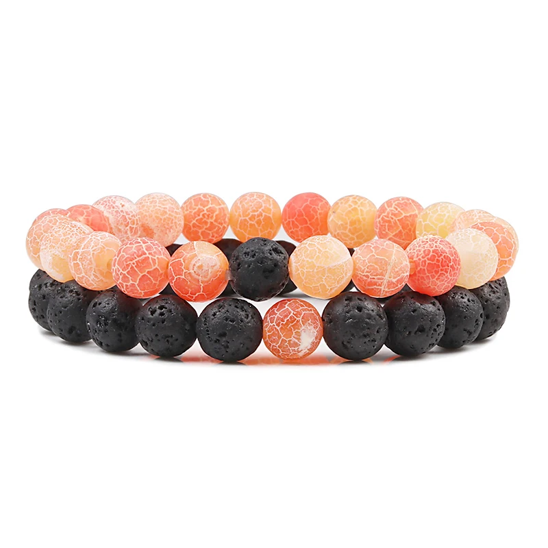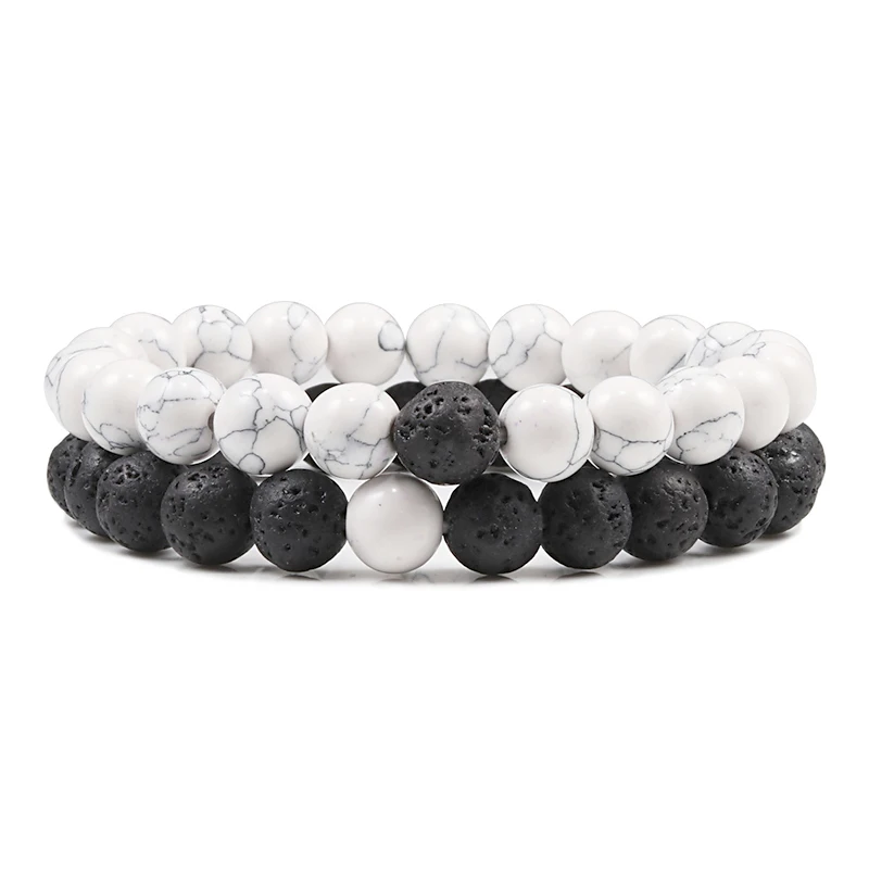 2 шт.компл. браслет для пар классический браслет из натурального камня черная лава браслеты из бисера для мужчин женщин ювелирные изделия для друзей Pulseras Homme