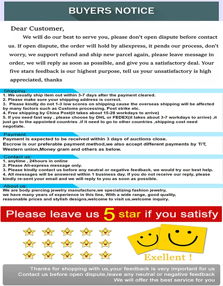 Я получил небольшую сумку с 10 пирсингом, они все одинаковые, пластик планки очень гибкий. Нить бара и мяч-это то, что выглядит менее надежно, но вы не можете просить больше. Это соответствует описанию.