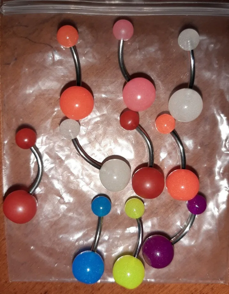 Пирсинг для пупка, женский, светящийся в темноте, разноцветный, 10 шт.лот