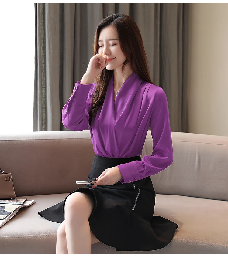 Женская шифоновая блузка с длинным рукавом, с V-образным вырезом