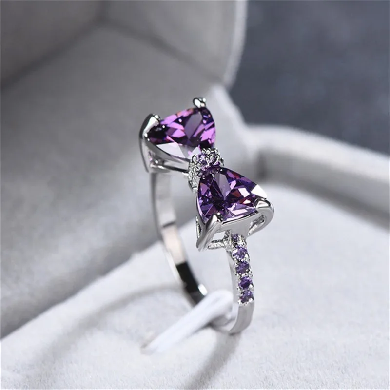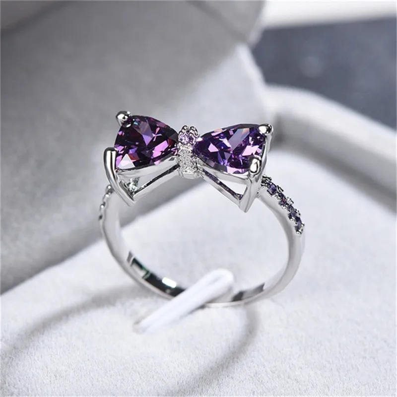 CC Модные кольца для женщин бант фиолетовый кубический цирконий кольцо элегантное для свадьбы помолвки Свадебные украшения Anel Прямая доставка CC2363