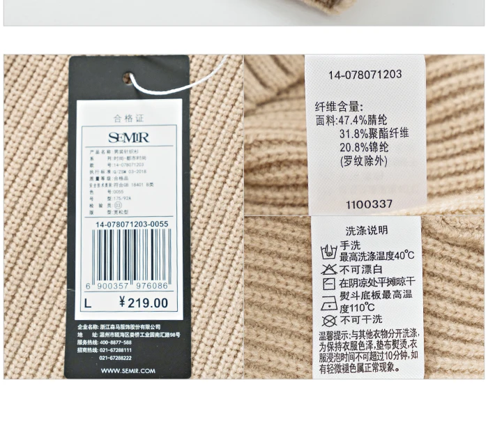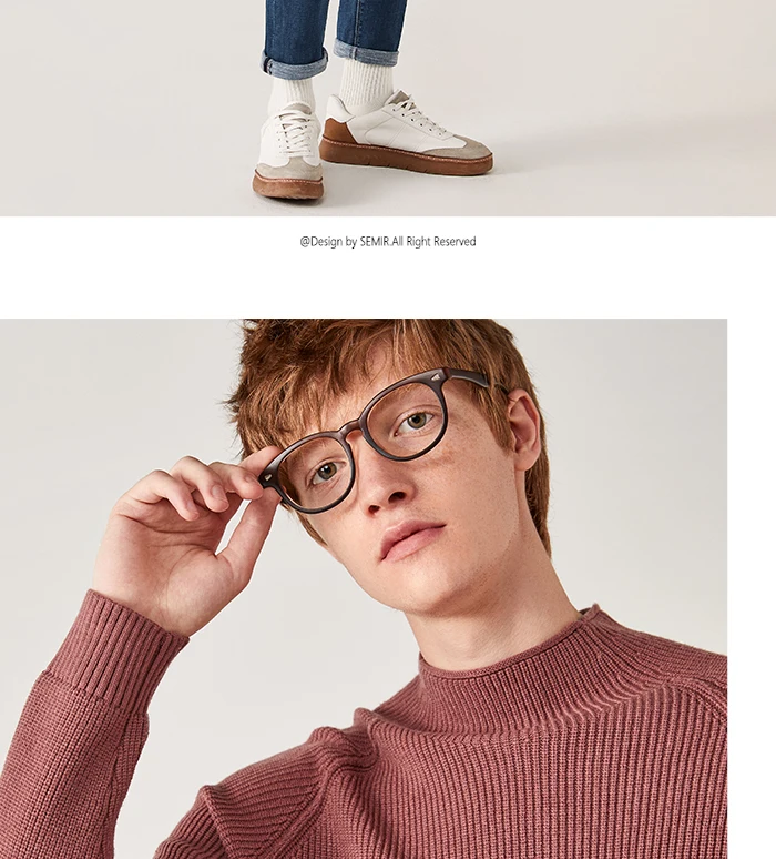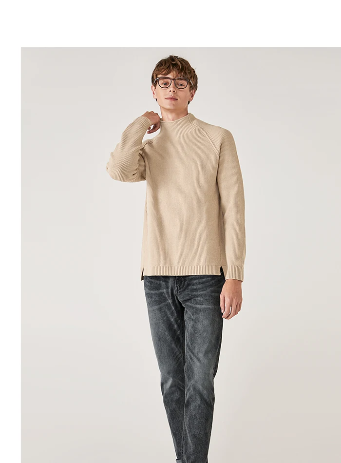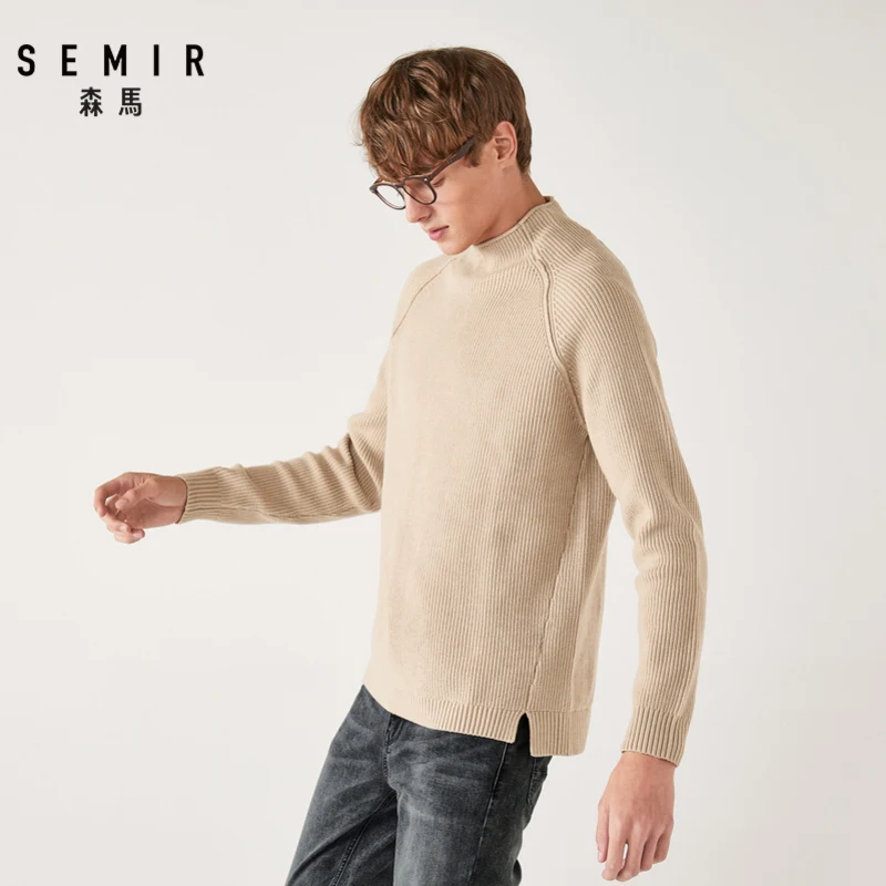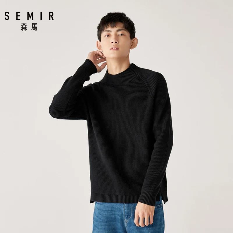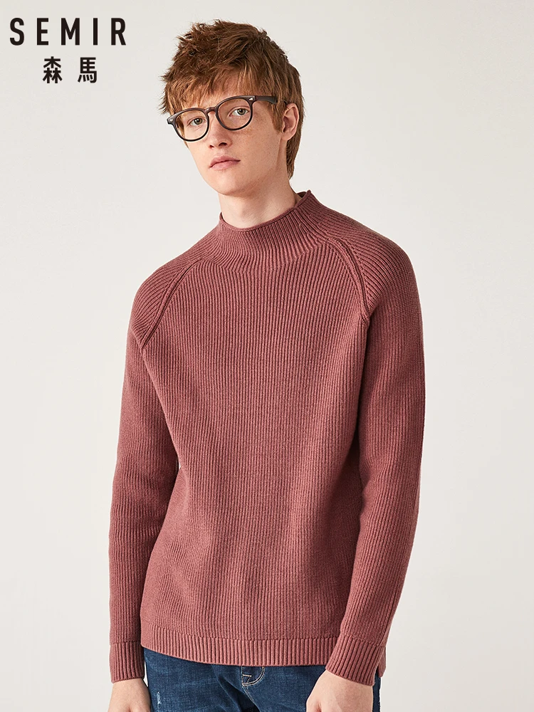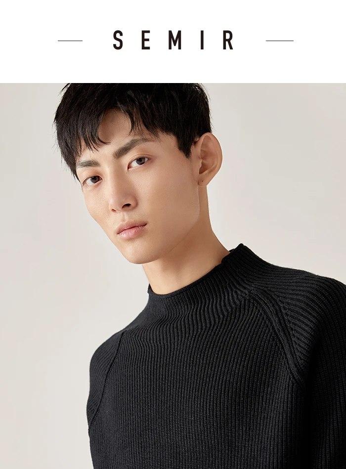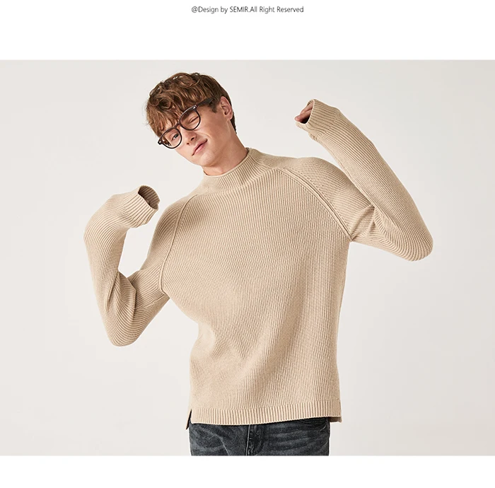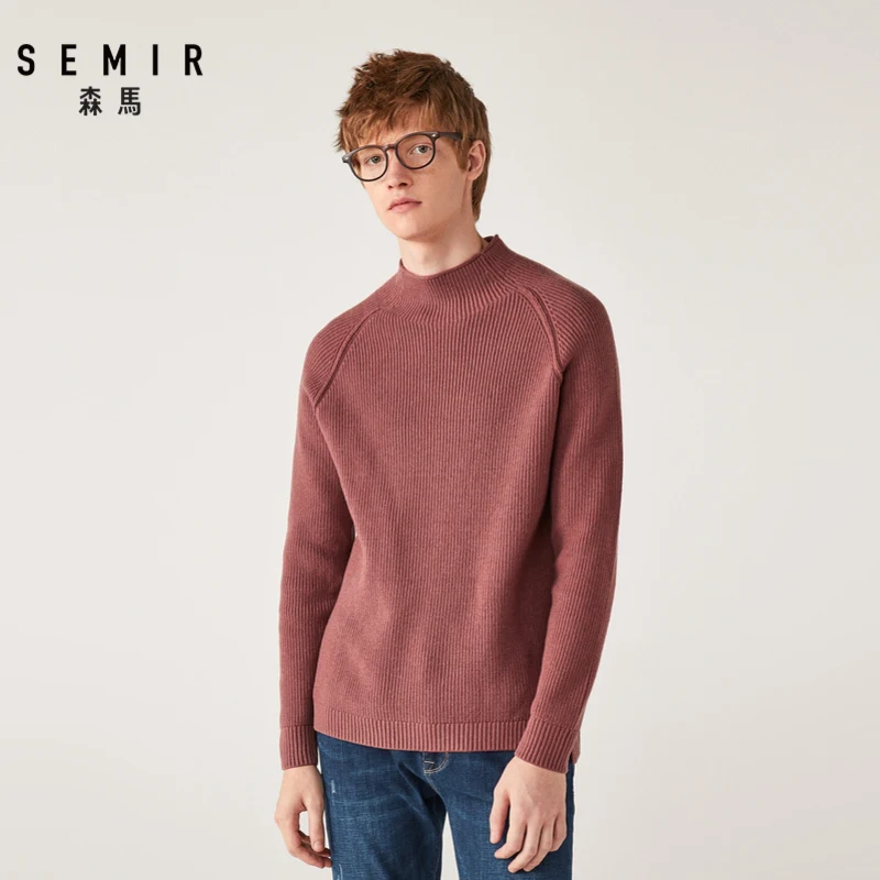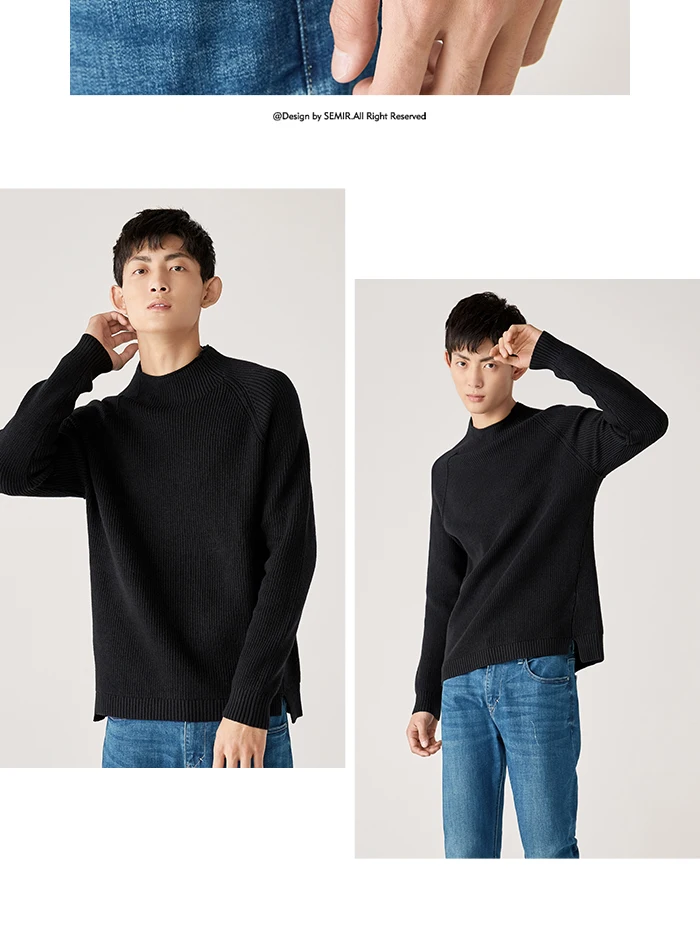 Semir пуловер, свитер для мужчин, свободный зимний свободный свитер 2019, теплый полувысокий воротник, Раздельный вязаный свитер, одноцветная рубашка для мужчин