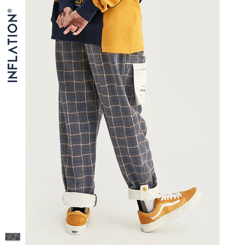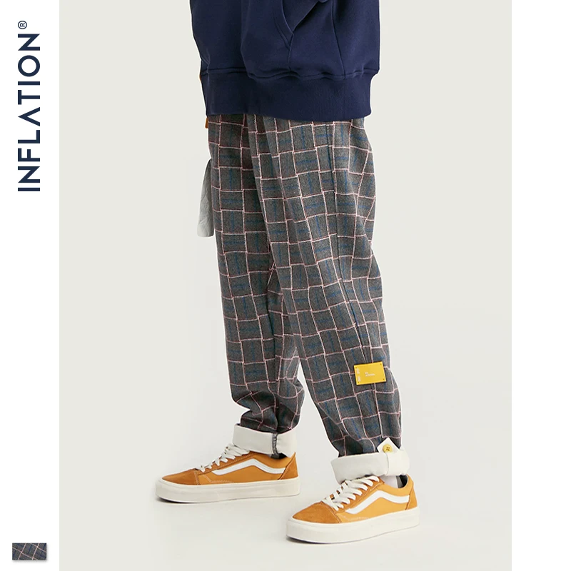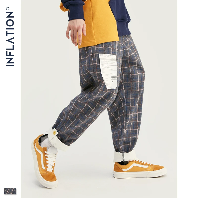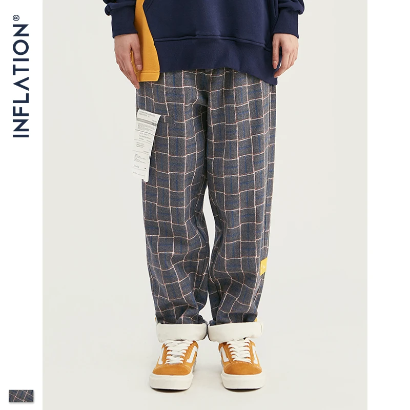 INFLATION бренд ретро Клетчатые Шерстяные мужские брюки Harajuku Свободные прямые повседневные мужские брюки 2020 AW уличный стиль мужские брюки 93362W
