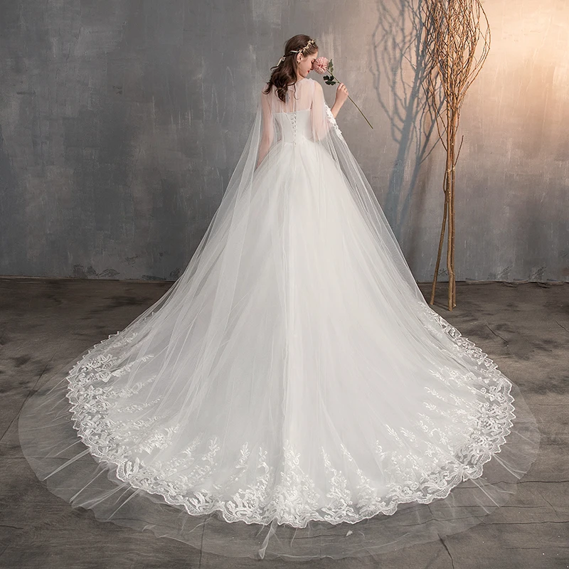 2021 китайское свадебное платье с длинной шляпой кружевное свадебное платье с длинным шлейфом Вышивка Принцесса Плюс Размер свадебное платье