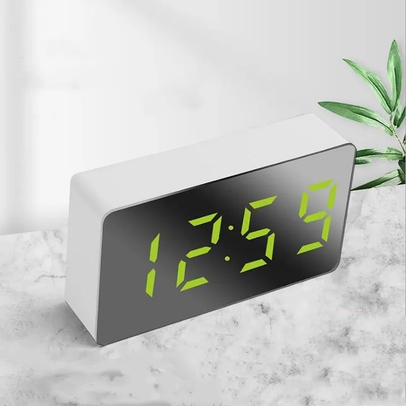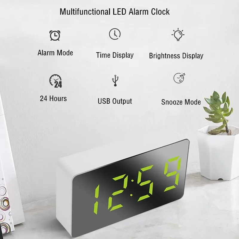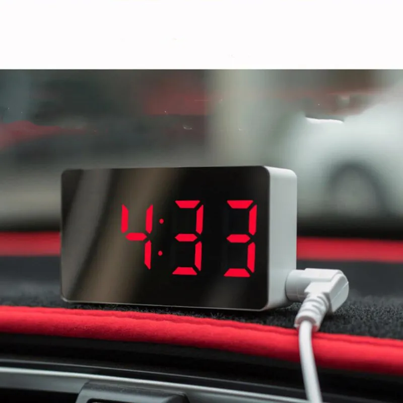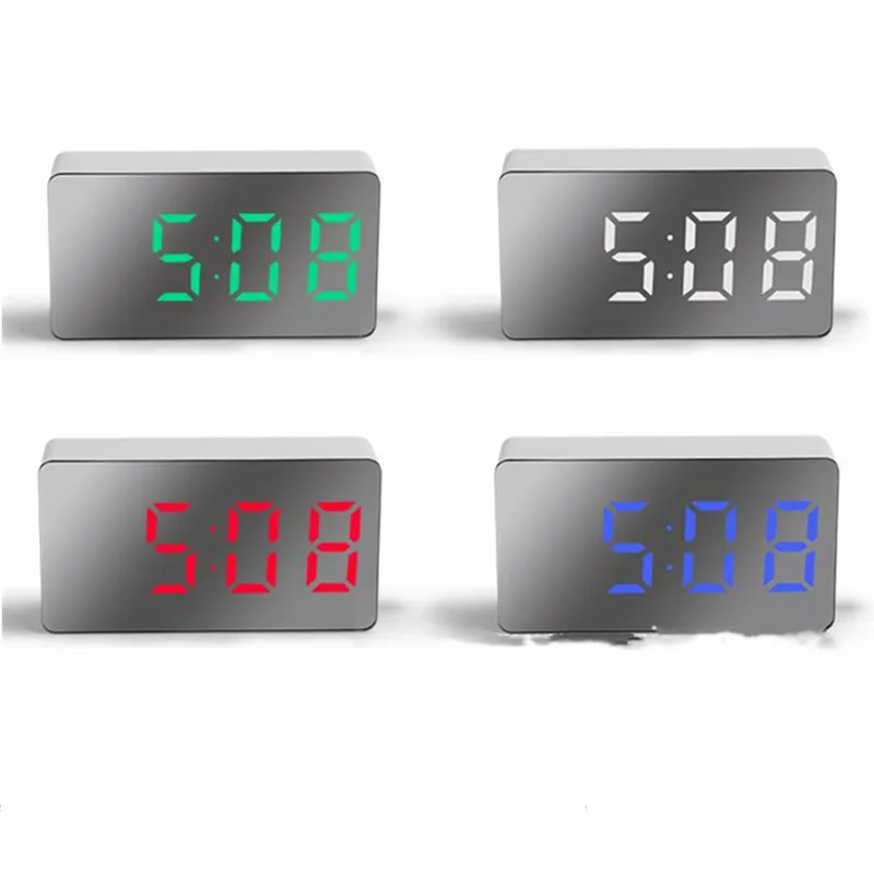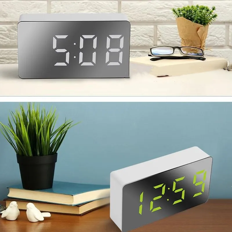 Цифровой светодиодный будильник с зеркалом, многофункциональные настольные часы с функцией повтора и светящимся в ночи ЖК-дисплеем, кабелем USB