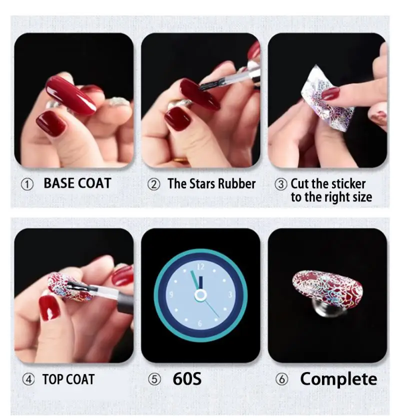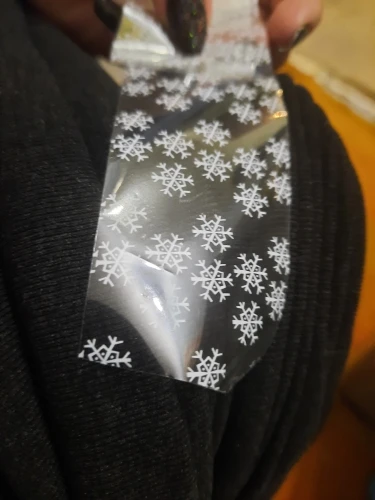 Посылка шла долго, но пришла. Внешне всё как на картинке. Заказывала снежинки. Нужно вырезать кусочек, на базу, до сушки приклеить, потом по сушить, потом снять с ногтя тонкий слой плёнки, рисунок должен остаться на ногте. Маленькие снежинки получились, чуть побольше получаются порванными.