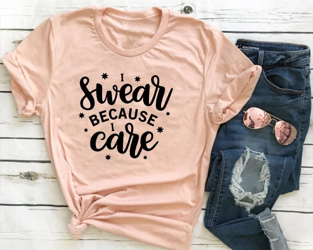 Женская футболка с надписью I Care, унисекс, персикового цвета, красивая, качественная, с эстетической цитатой, топы-K217