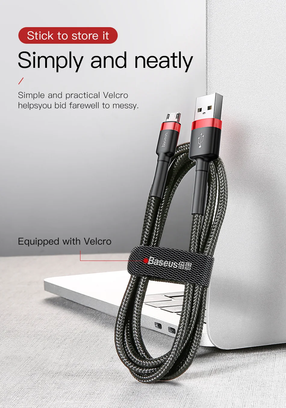 Кабель Baseus Micro USB для Xiaomi Redmi, двусторонний, 0,5 м, 1 м, 2 м, 3 м, для быстрой зарядки и передачи данных, для телефонов Samsung