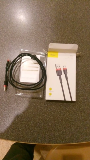 Как рекламируется. Однако кабель довольно тонкий. Соединение с телефоном очень прочное, потому что оно находится между верхней и нижней частью разъема micro-USB. Самый прочный кабель micro-USB, который у меня был до сих пор. Липучка также является желанным дополнением. Проблема только в описании, что один из кабелей упакован в коробку 100 см, а не в 200 см, который я заказал. Сначала я испугался, но, по крайней мере, это был правильный кабель внутри. Вопрос, который я получил с доставкой посылки, заключается в том, что посылка была довольно медленной из-за того, что почта Сингапура. В противном случае, из Китая в Румынию, быстрая доставка.