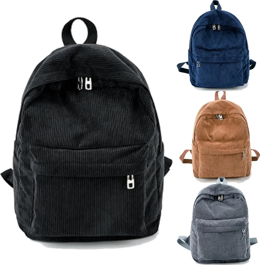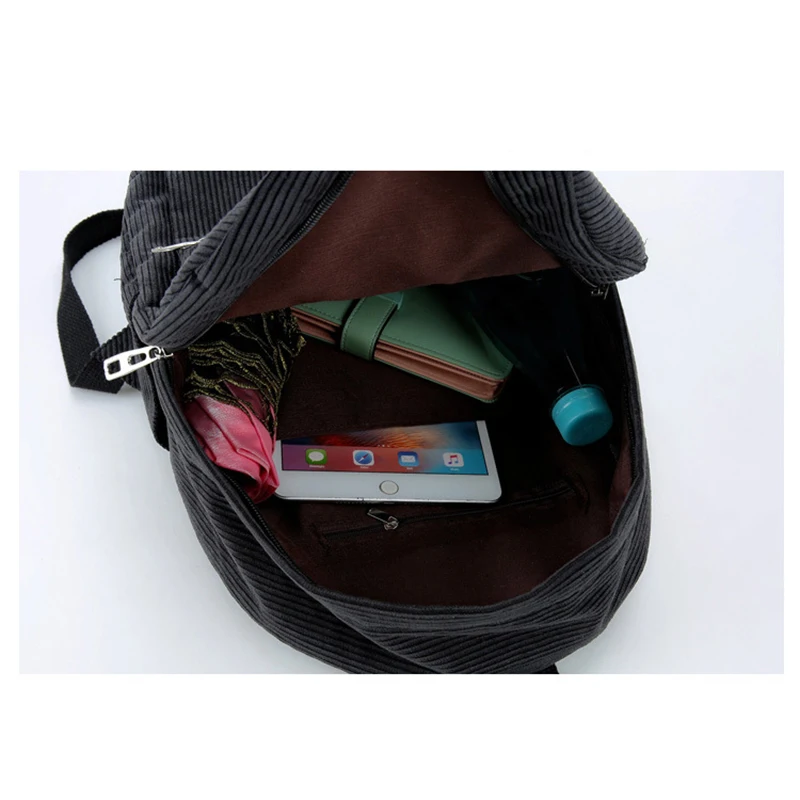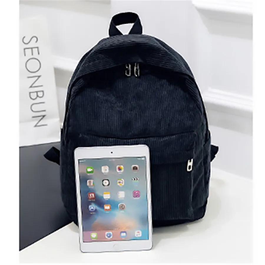 Вельветовый рюкзак для женщин и мужчин, однотонная дорожная сумка, модный двойной ранец, школьный ранец для студентов-подростков, 2019
